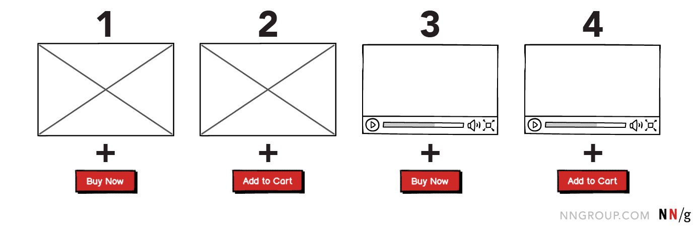 逐步A/B測試的侷限:你可能先測試“影片 vs 圖片”,再測試按鈕標籤,但這種方式無法得出“圖片 + 加入購物車”是否優於其他組合。