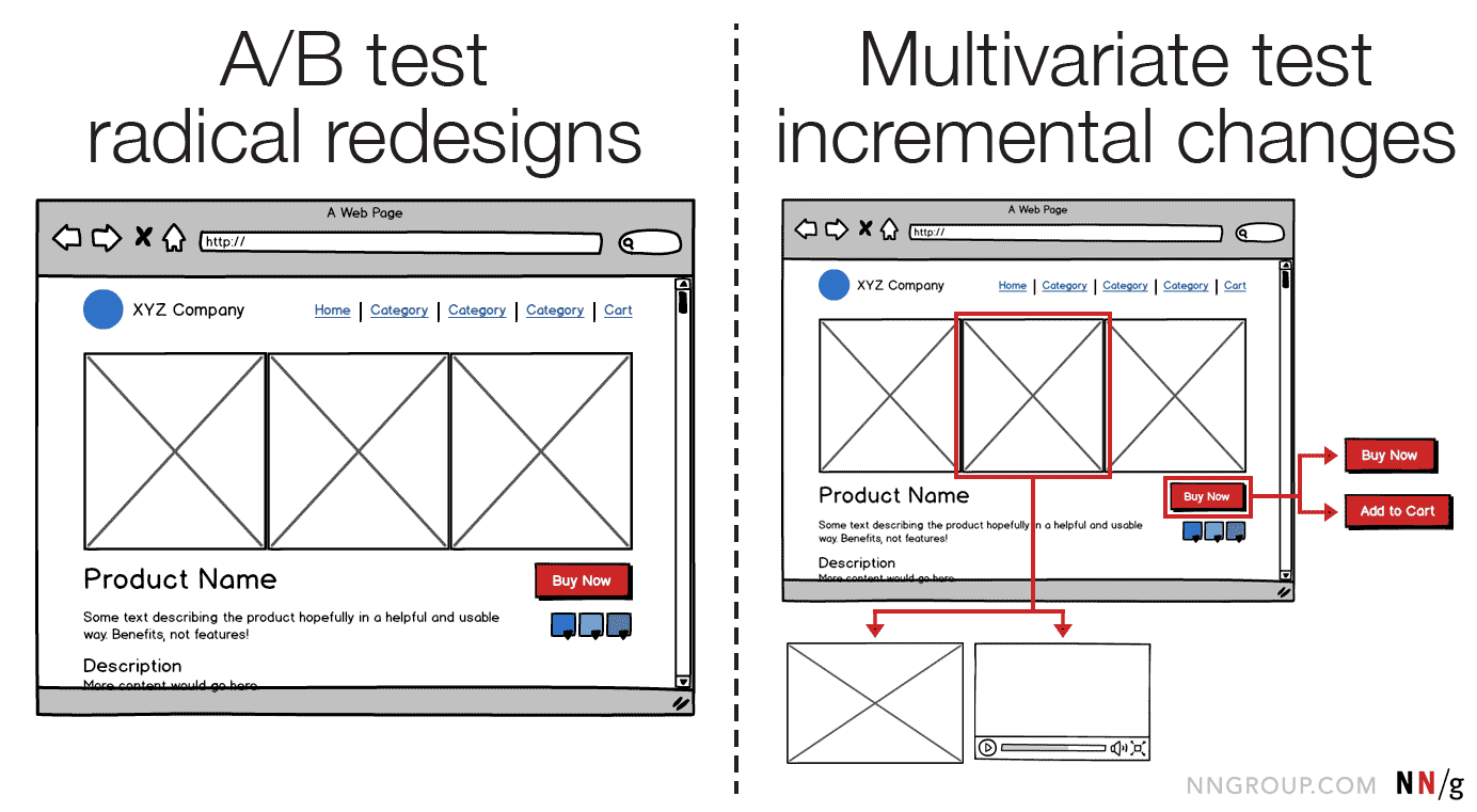 Multivariate vs. A/B Testing: Incremental vs. Radical Changes多變數測試與A/B測試:增量改進與顛覆性變更
