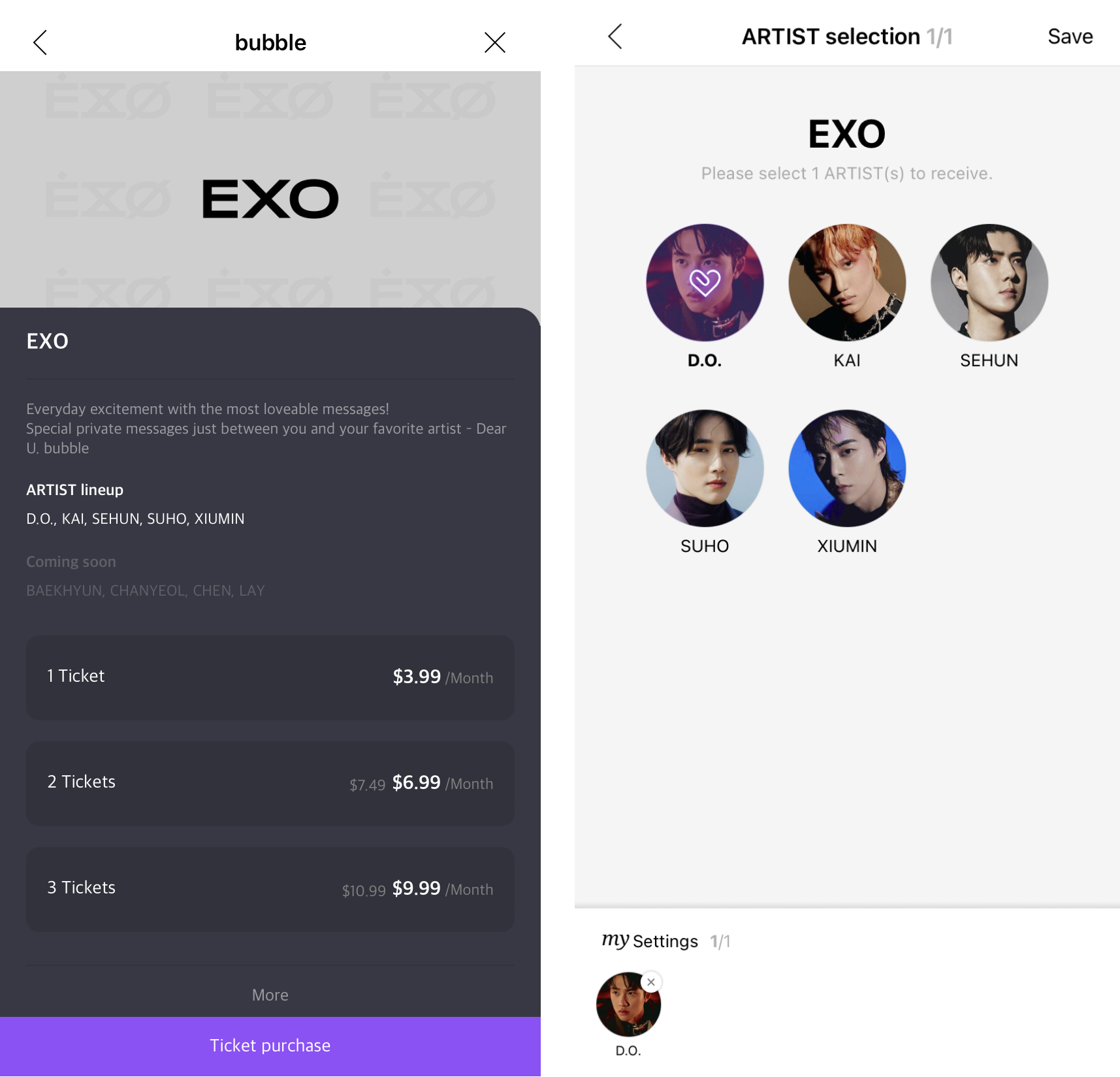 在這些應用中,當粉絲支付費用後,會建立一個新的私聊視窗,偶像的訊息開始出現在粉絲的聊天列表中。