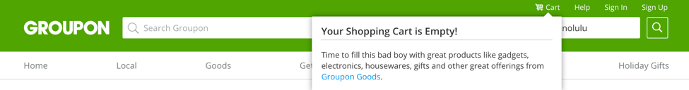 案例:Groupon 的幽默微文案增加了趣味性,但這類設計可能顯得淺薄,尤其是在產品本身存在問題時。