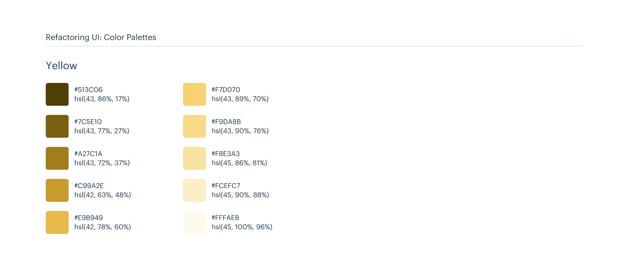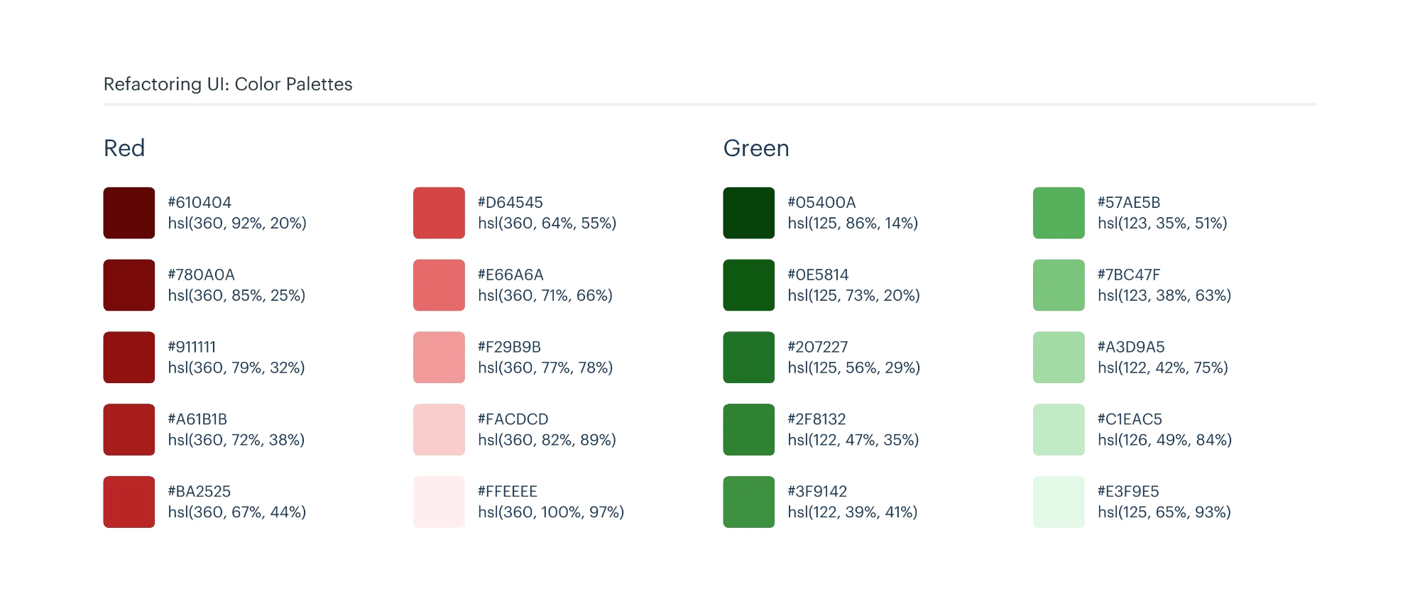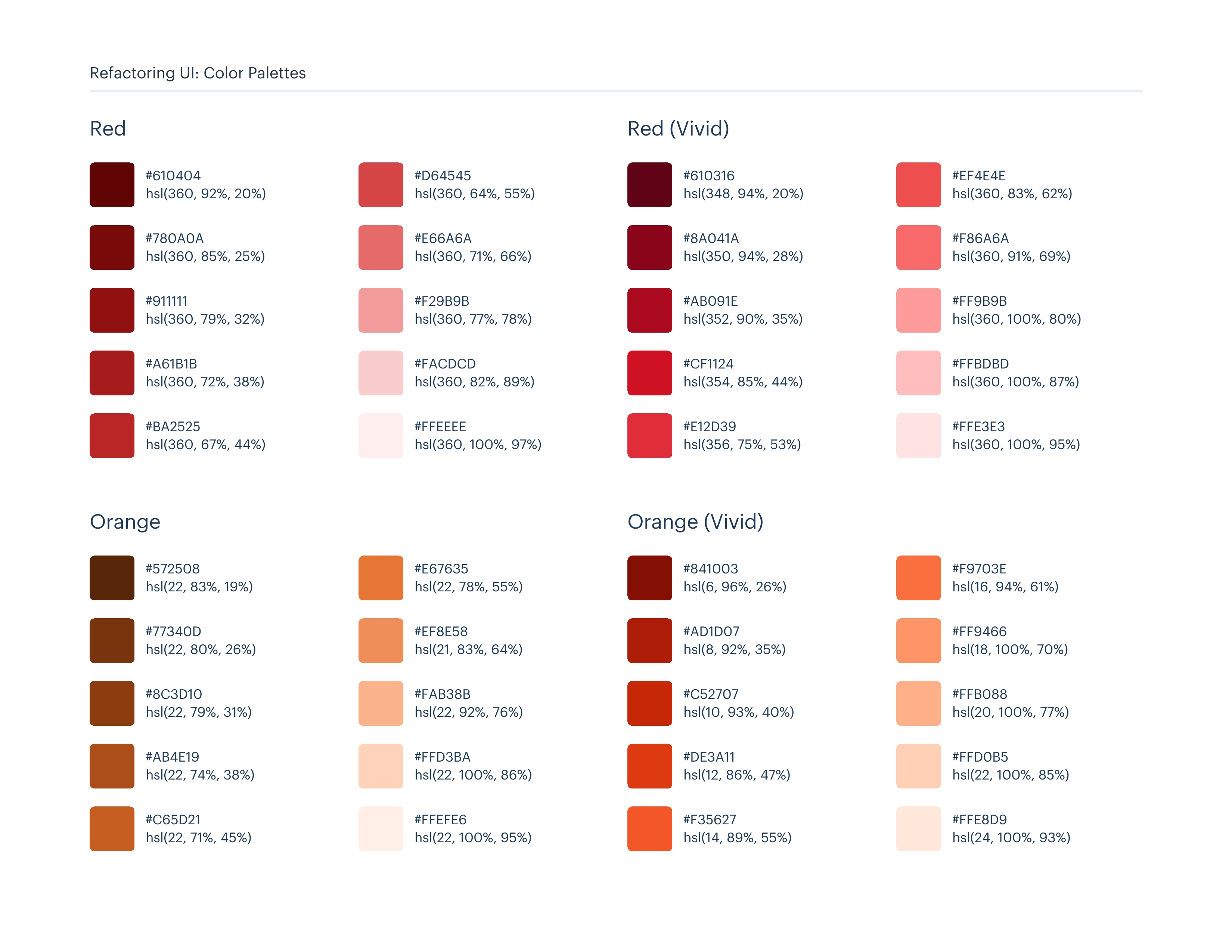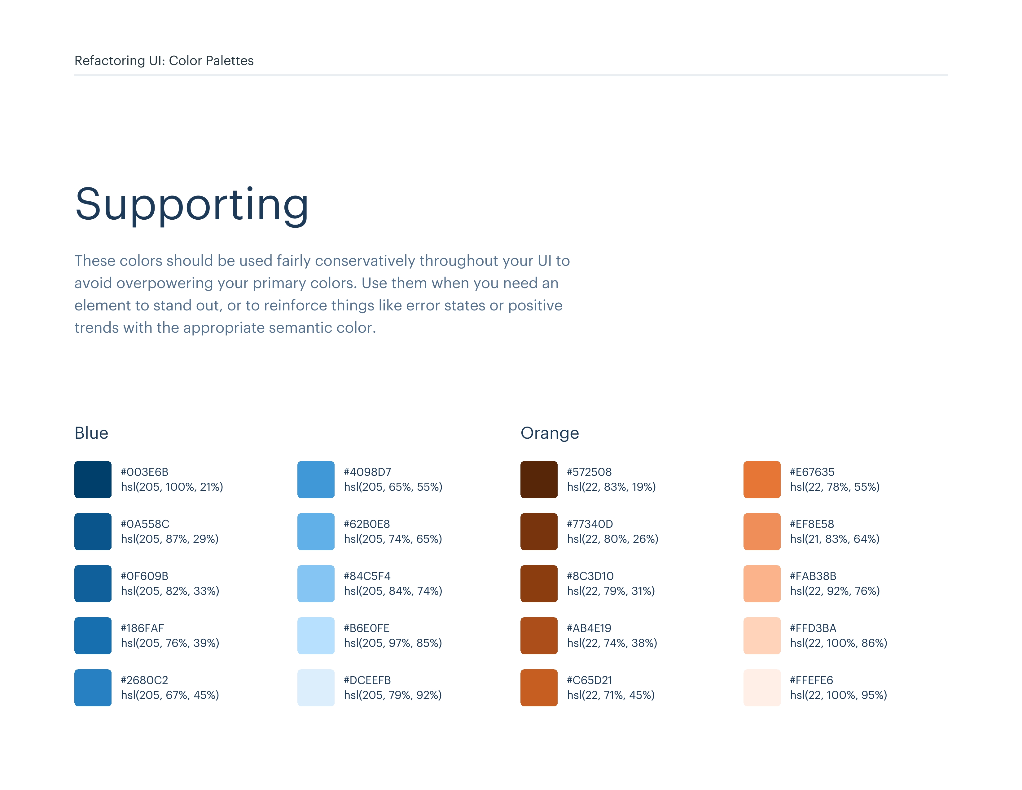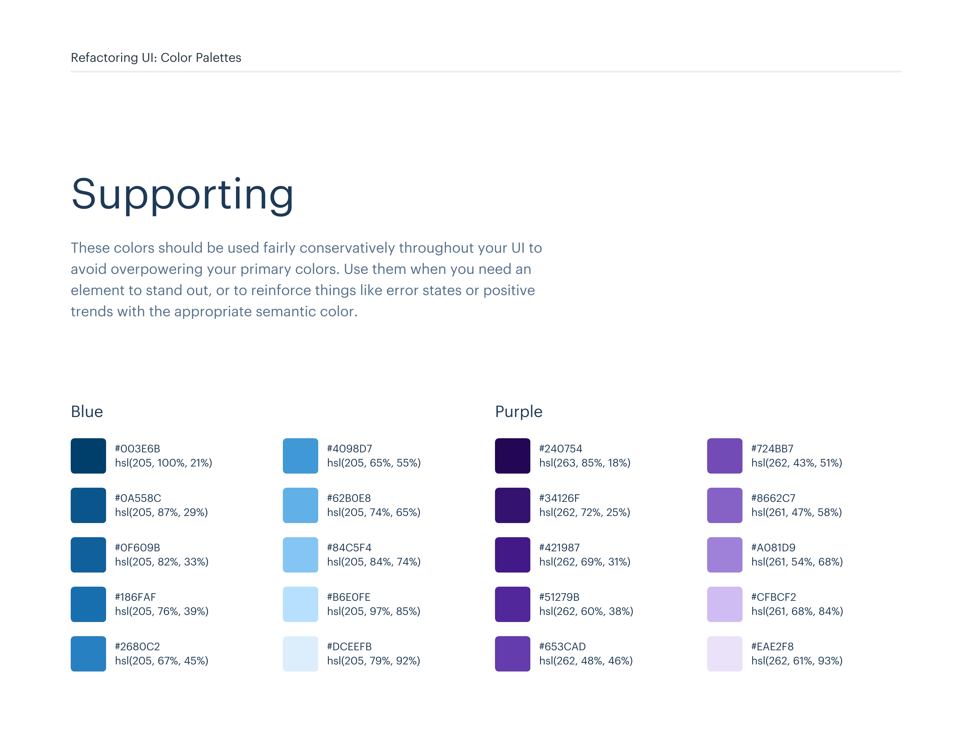 These are the colors you will use the most and will make up the majority of your UI. Use them for most of your text, backgrounds, and borders, as well as for things like secondary buttons and links.
