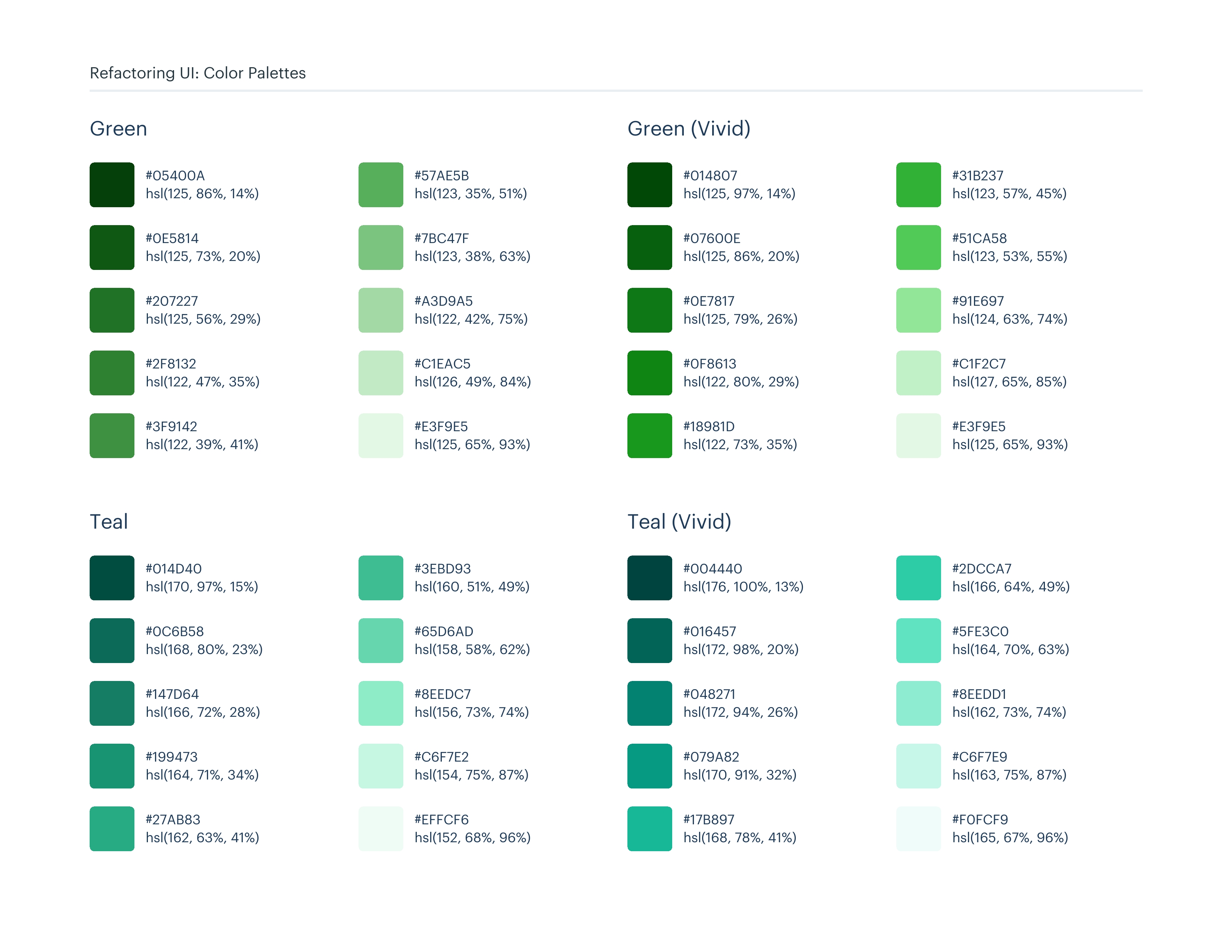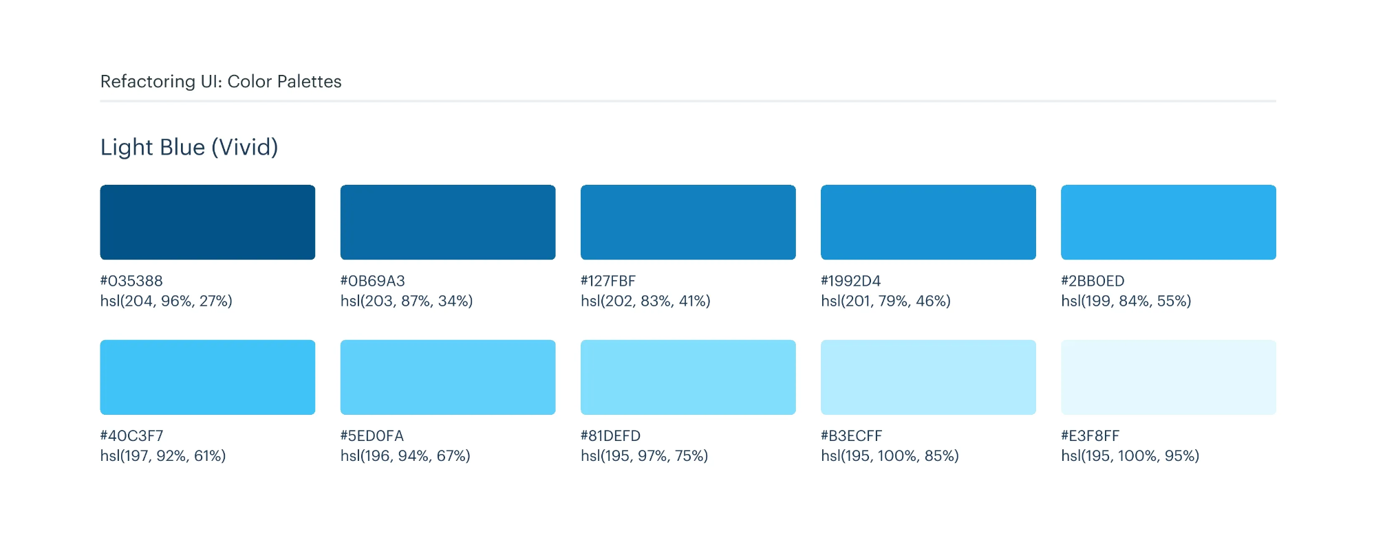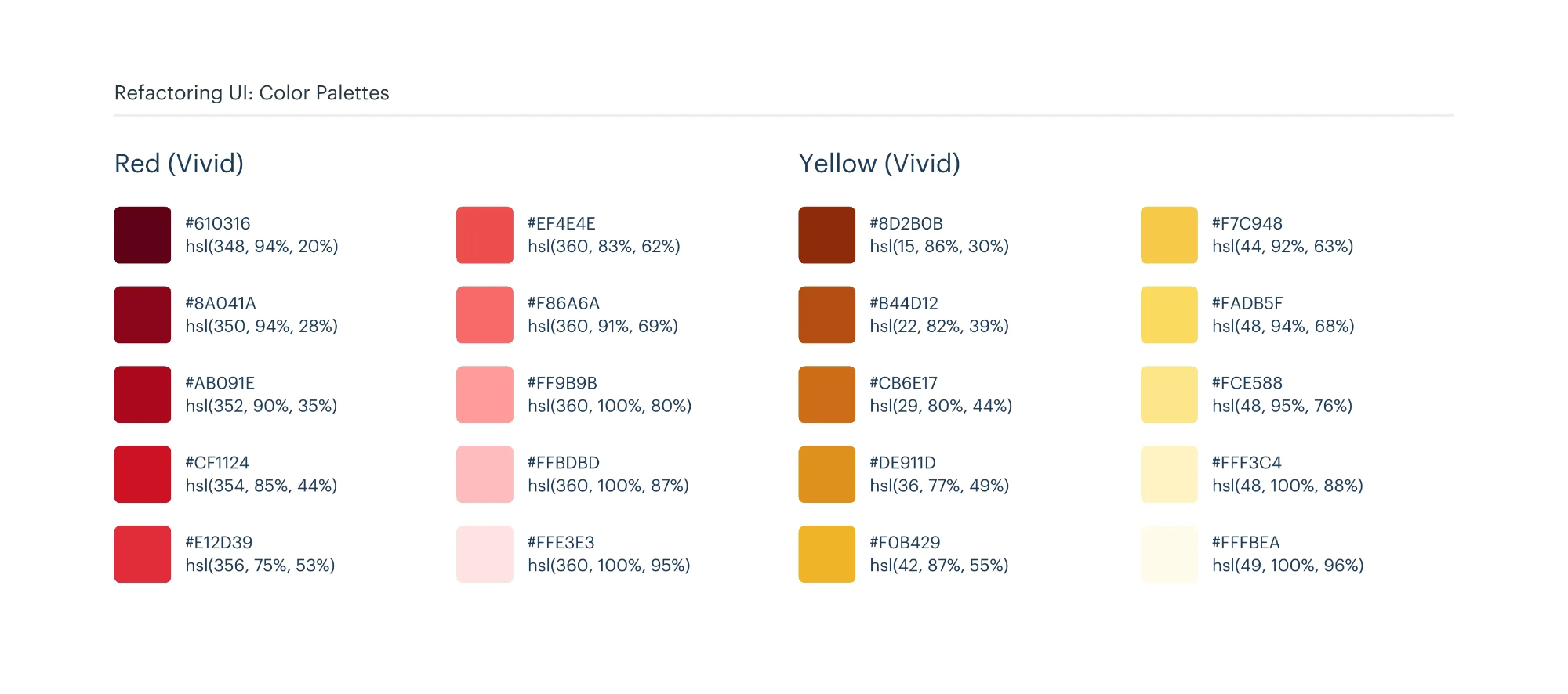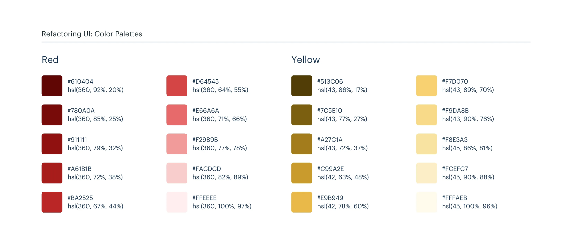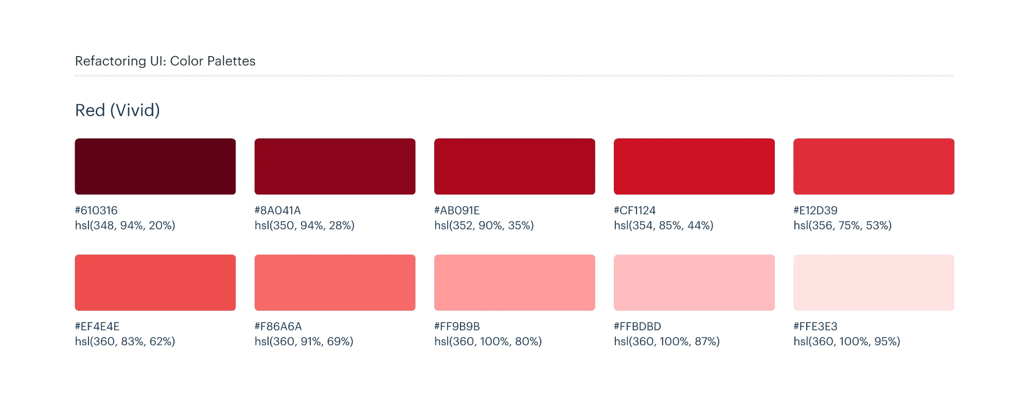 These are the colors you will use the most and will make up the majority of your UI. Use them for most of your text, backgrounds, and borders, as well as for things like secondary buttons and links.