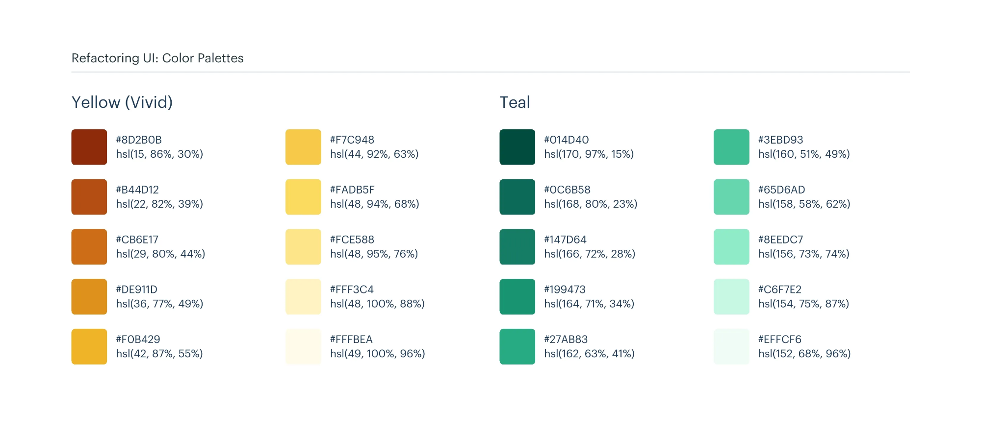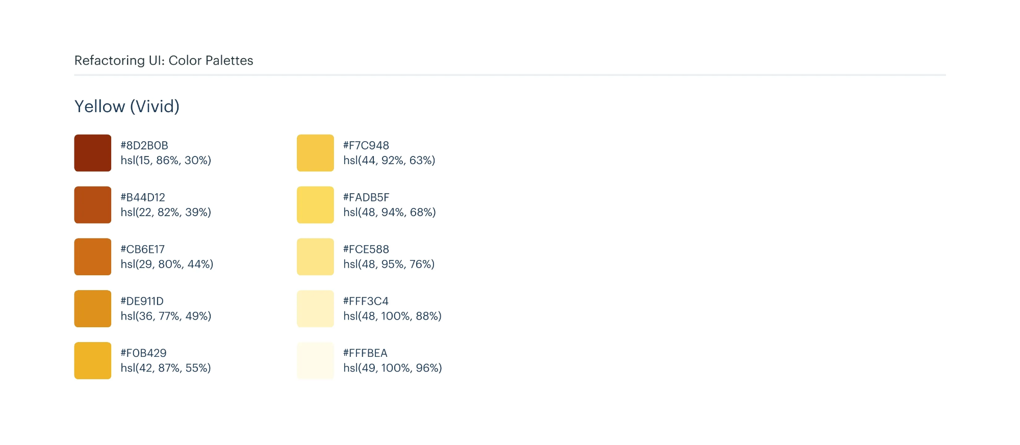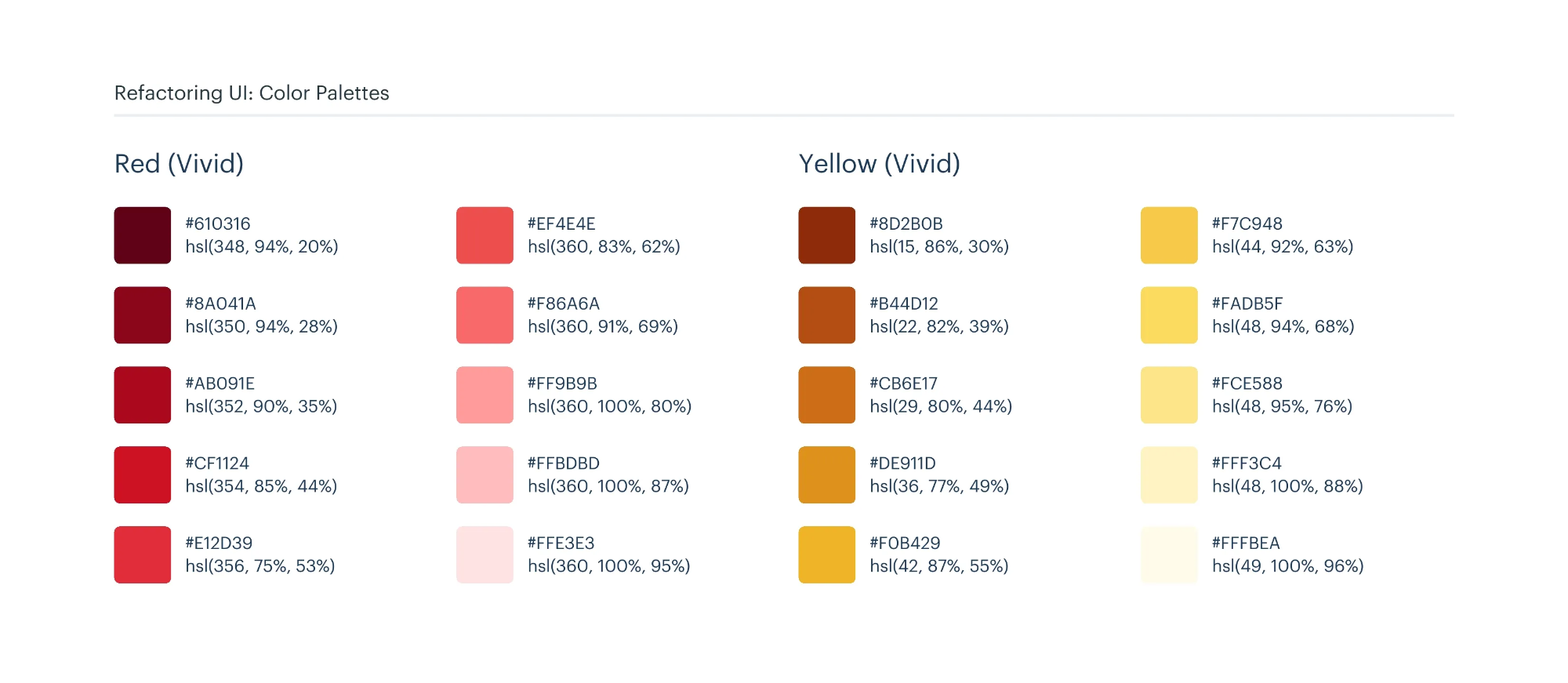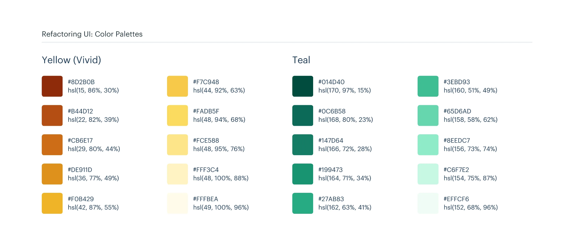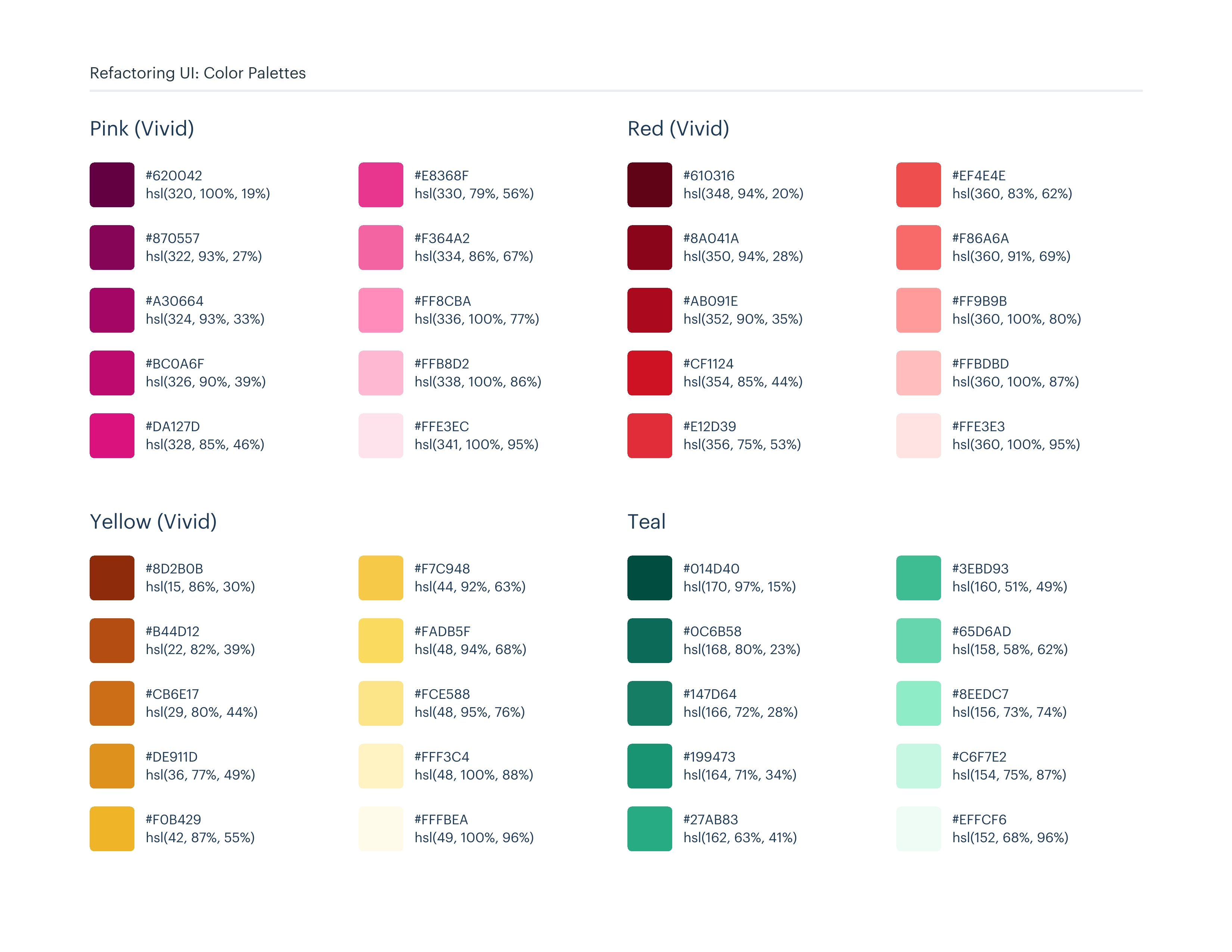 These are the colors you will use the most and will make up the majority of your UI. Use them for most of your text, backgrounds, and borders, as well as for things like secondary buttons and links.