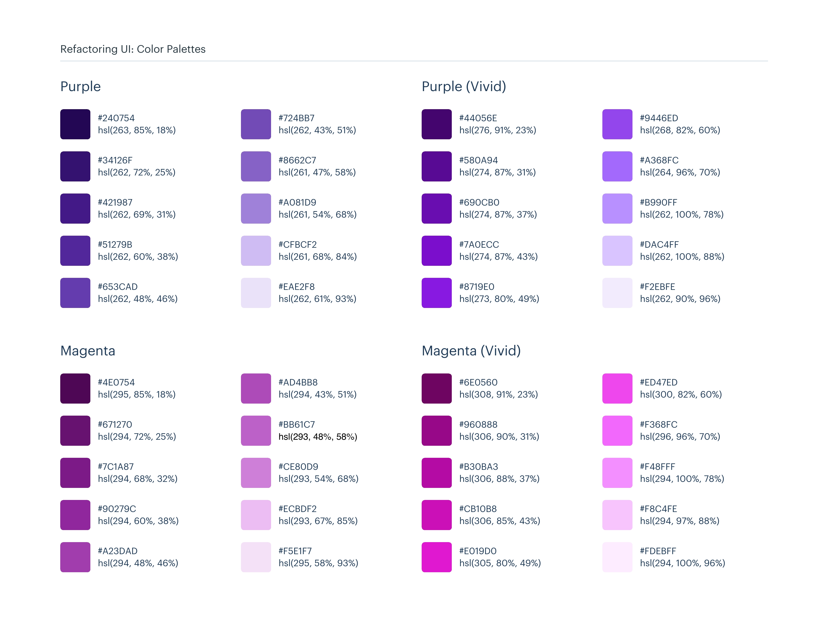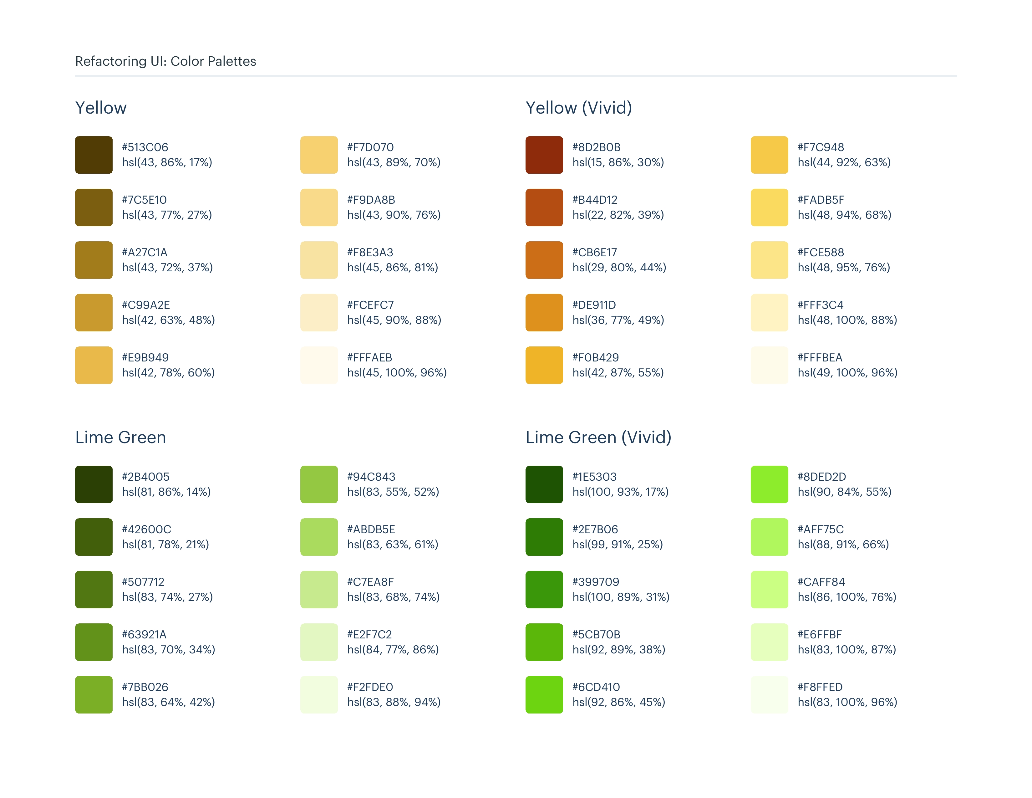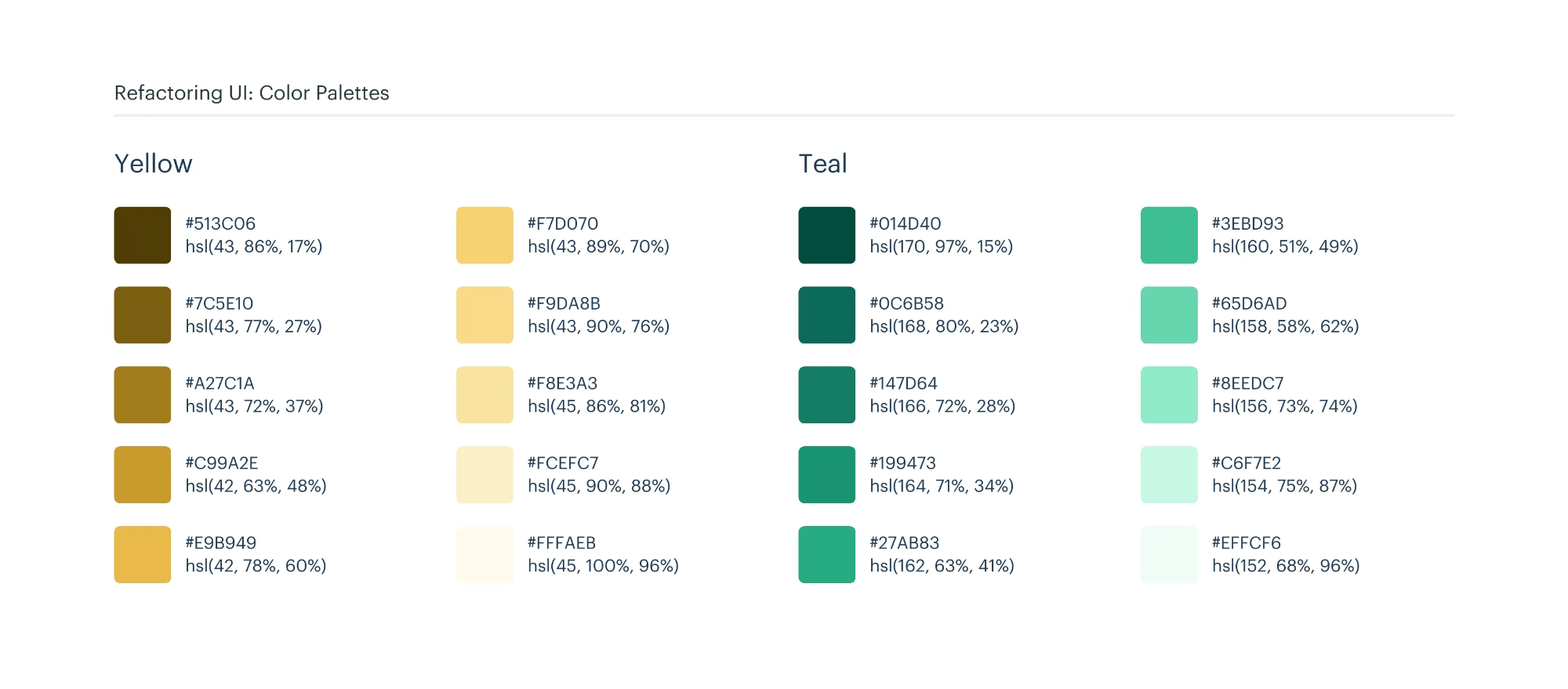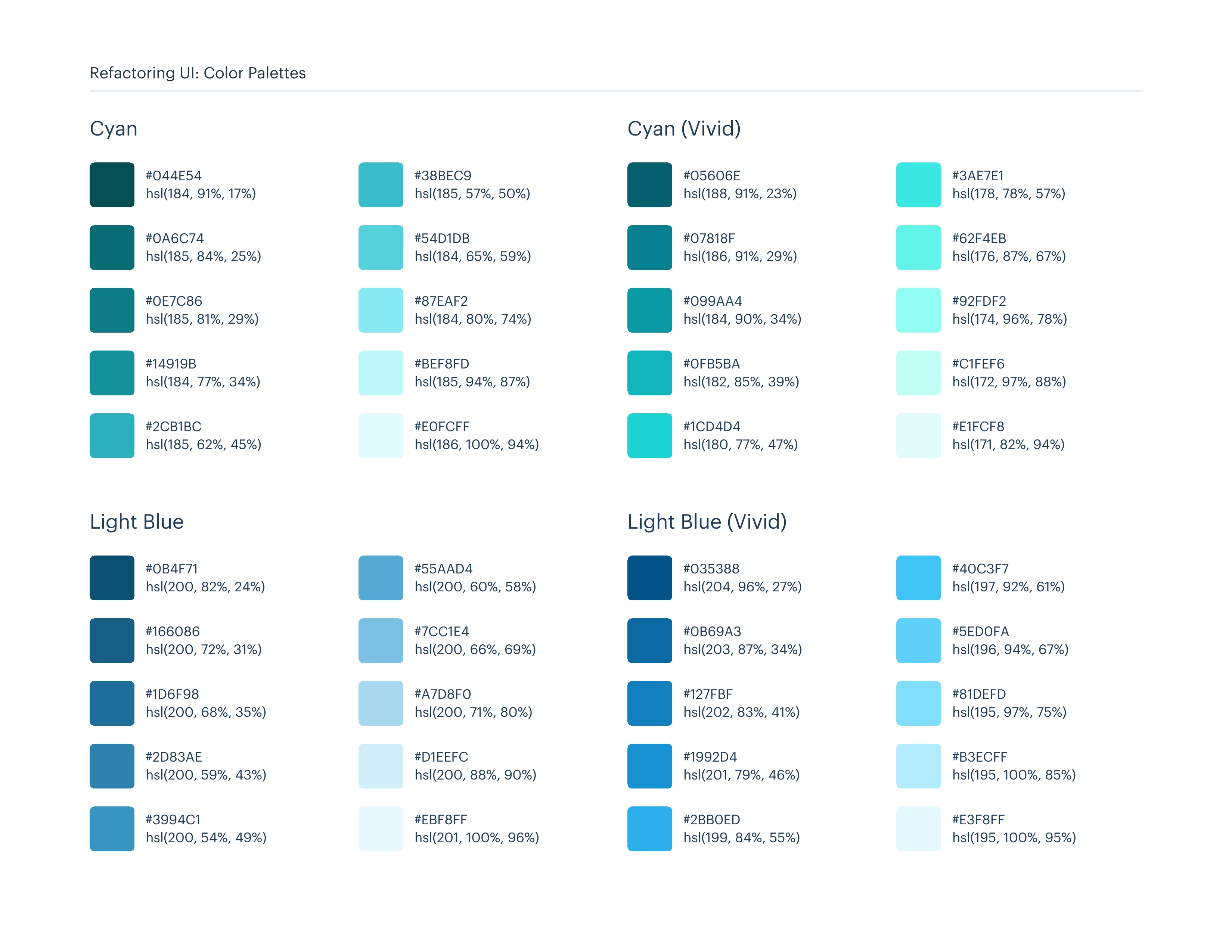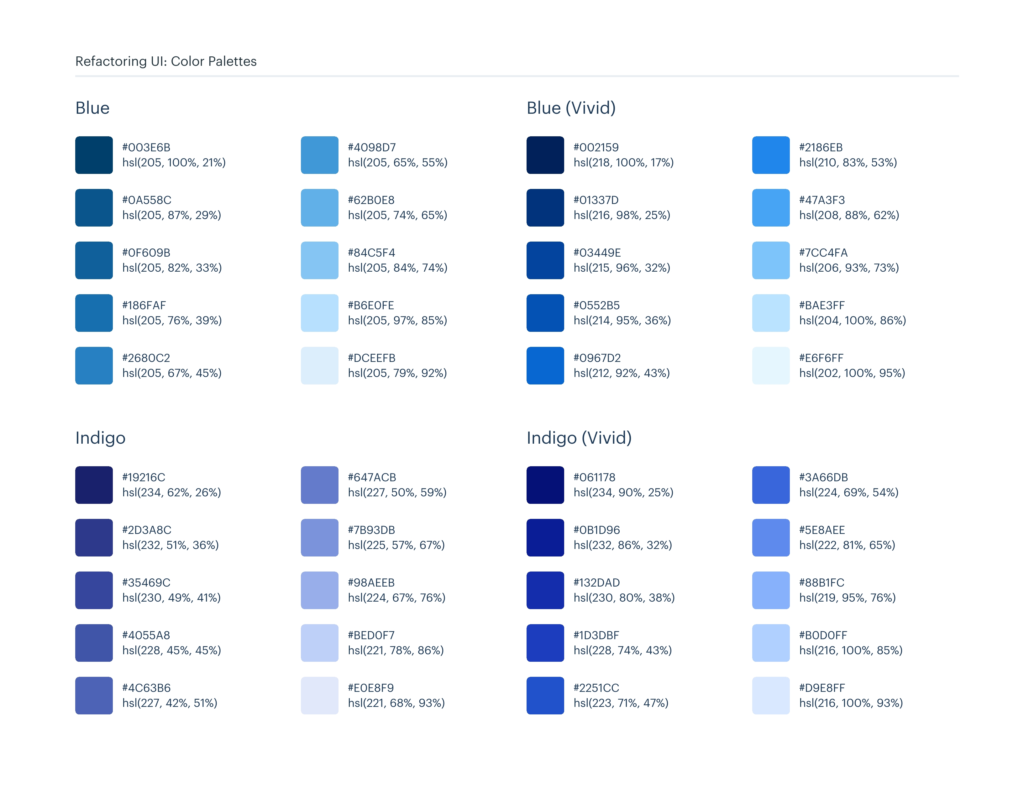 These are the colors you will use the most and will make up the majority of your UI. Use them for most of your text, backgrounds, and borders, as well as for things like secondary buttons and links.