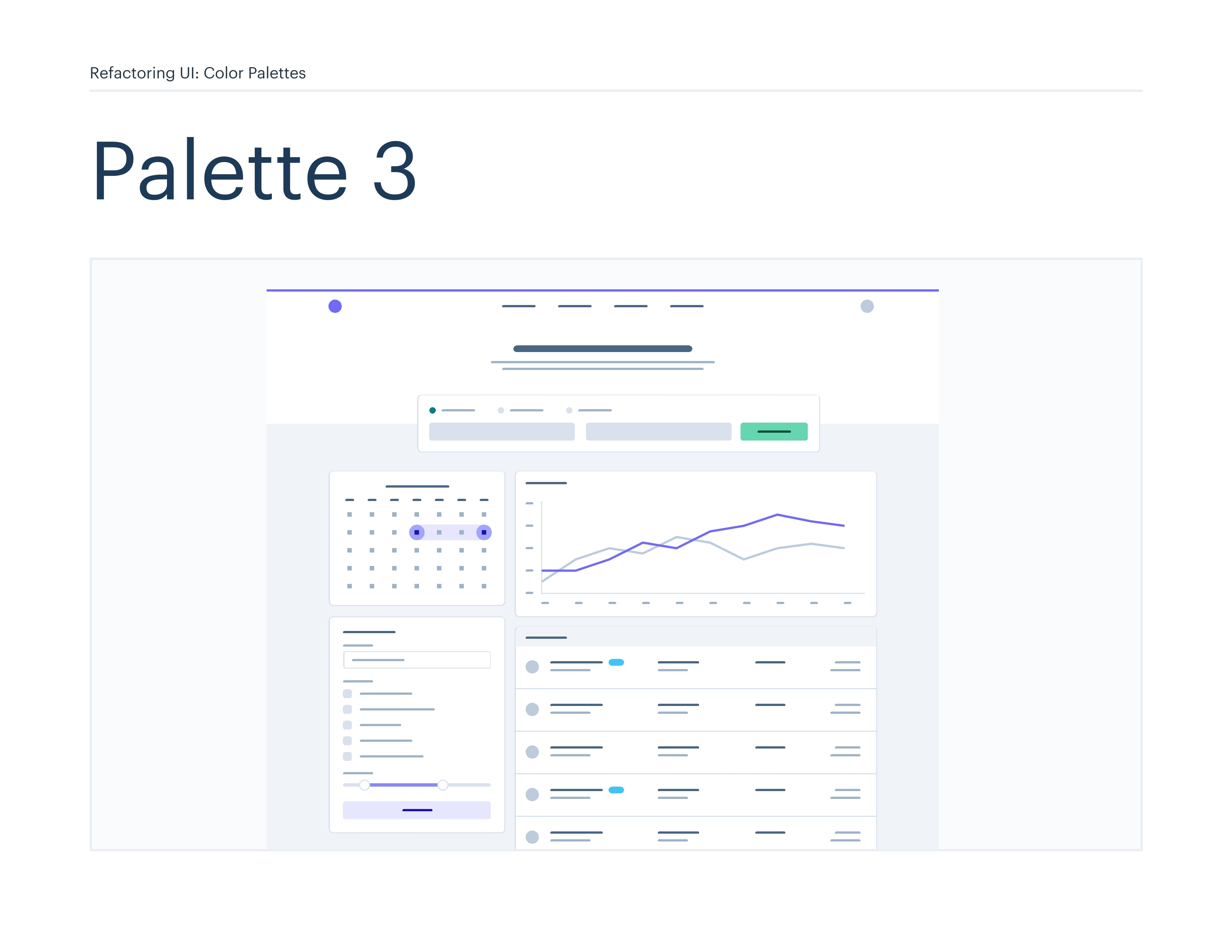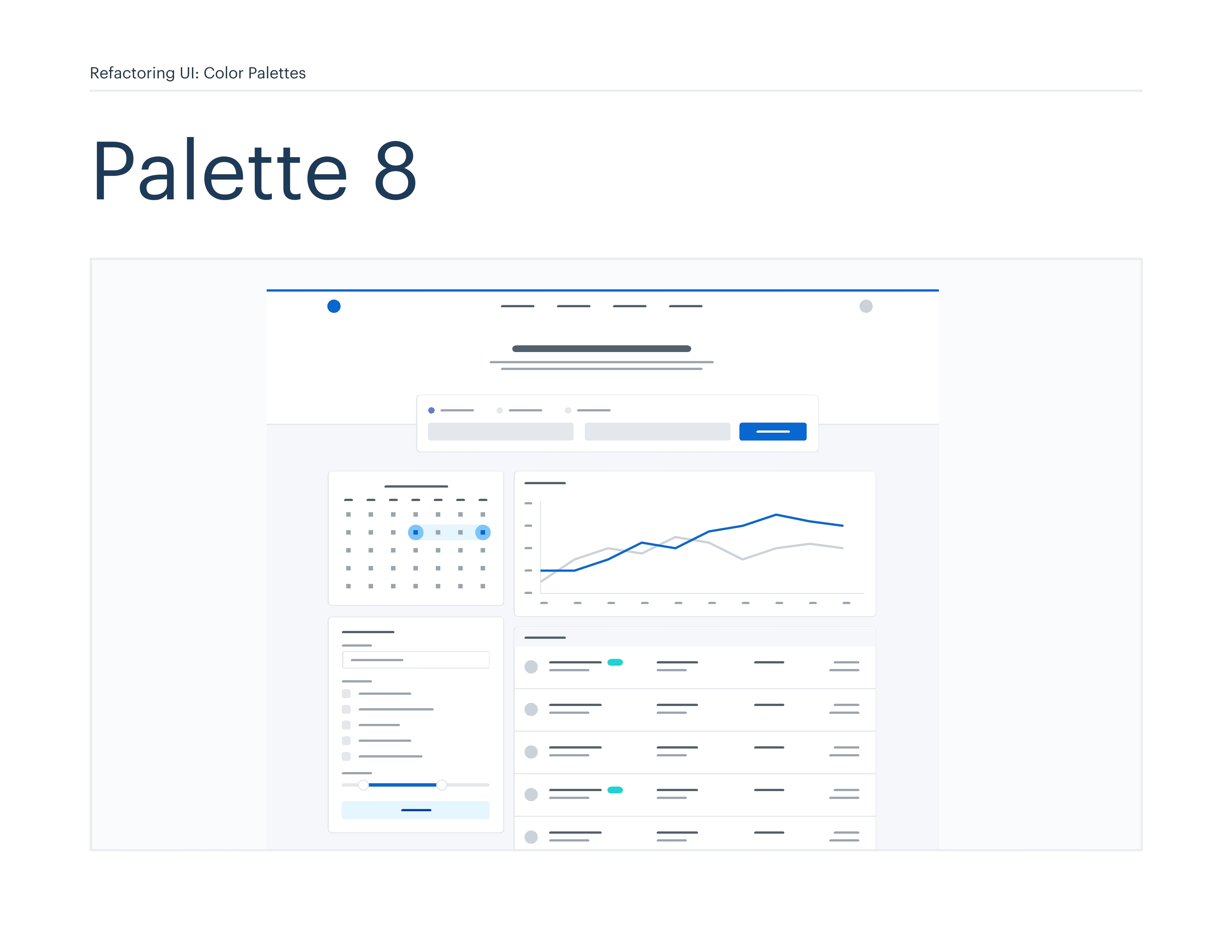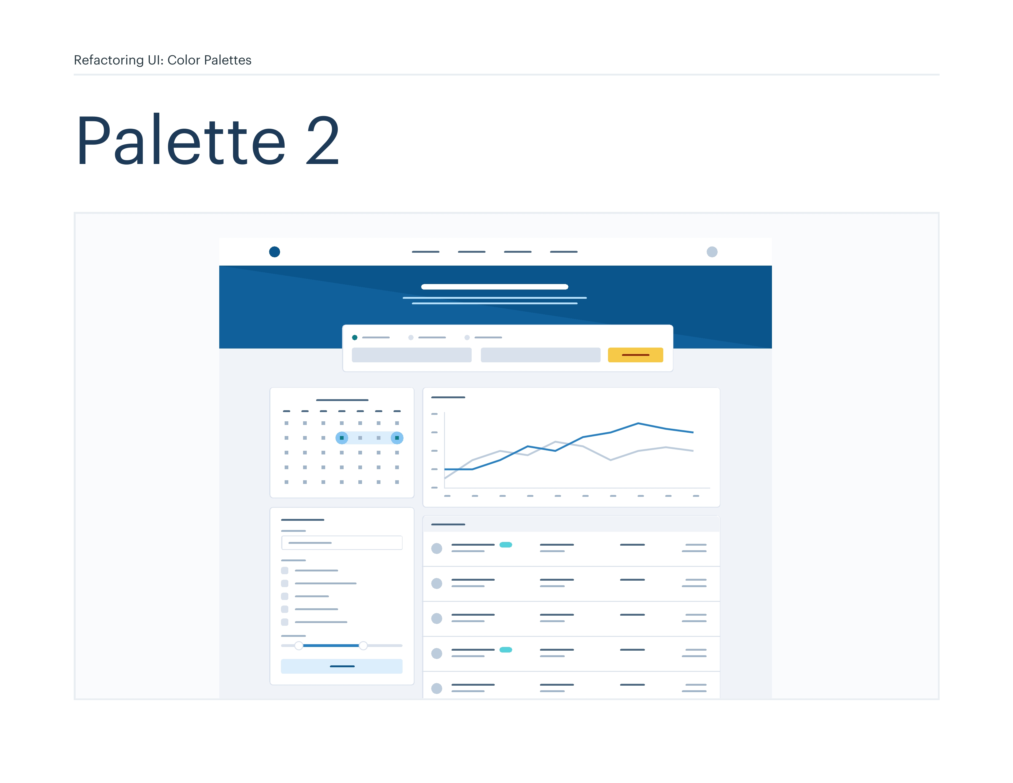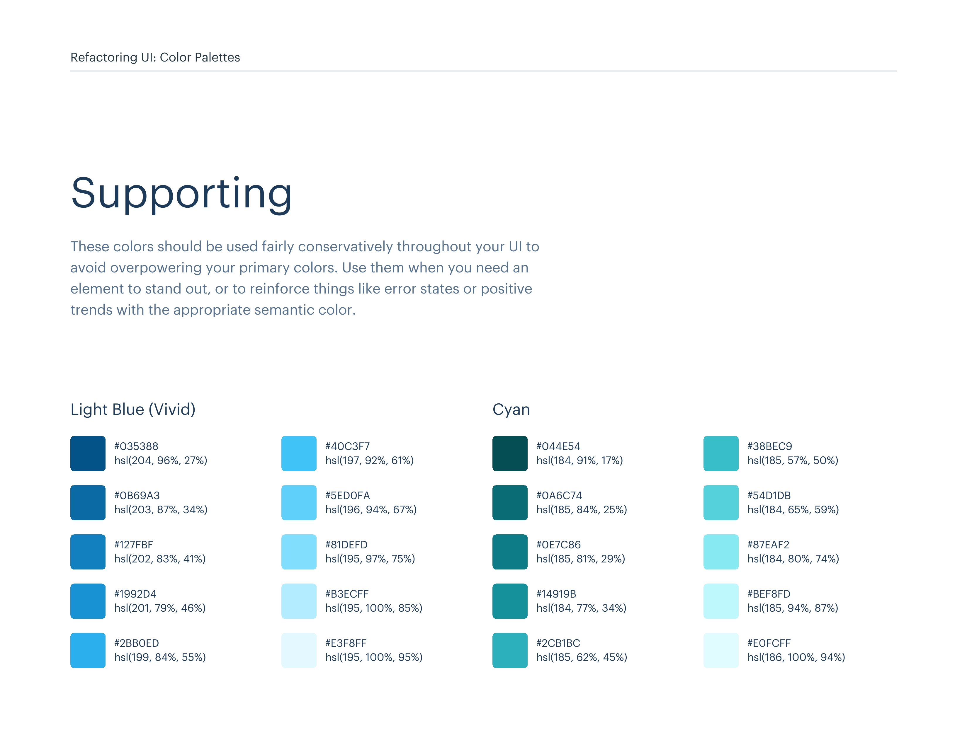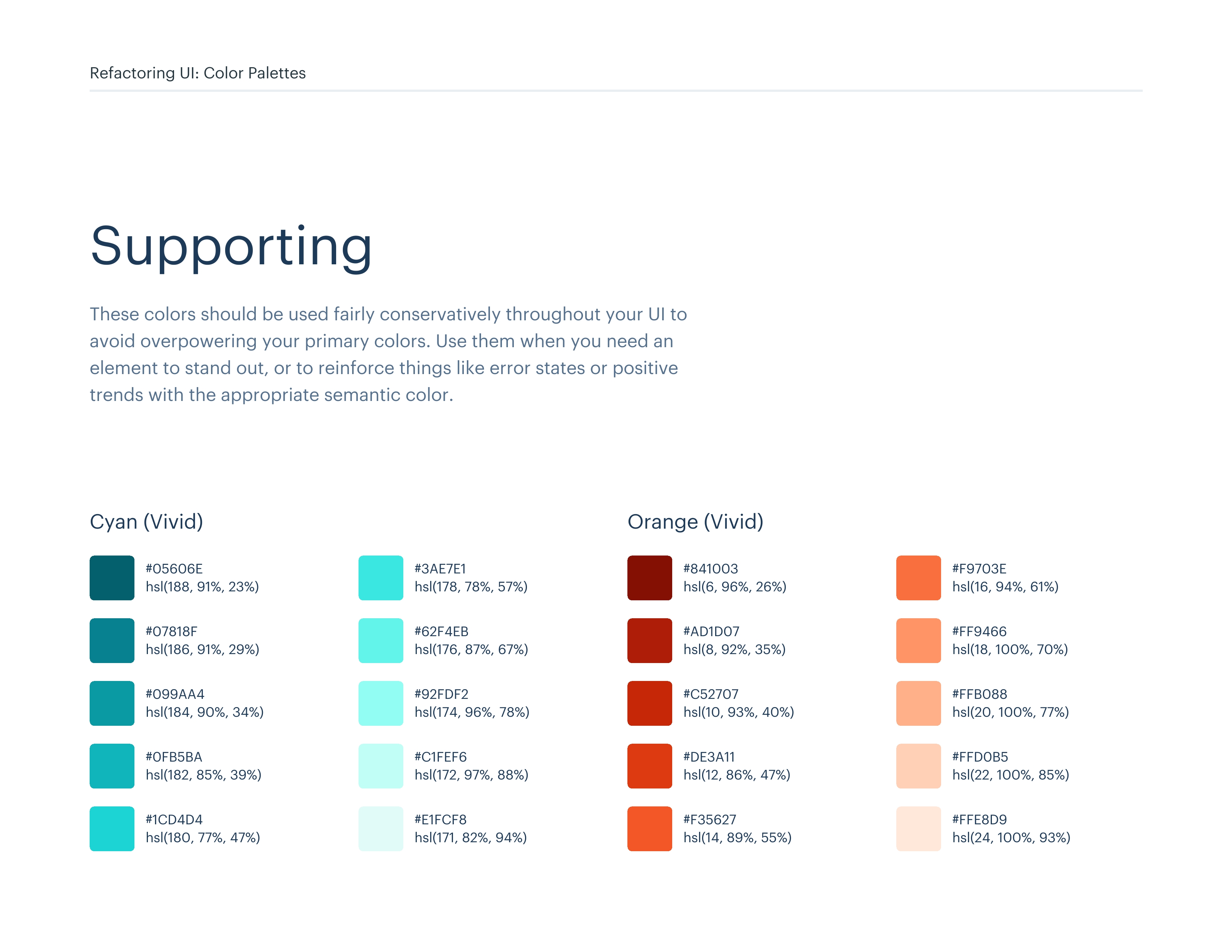 These are the splashes of color that should appear the most in your UI, and are the ones that determine the overall "look" of the site. Use these for things like primary actions, links, navigation items, icons, accent borders, or text you want to emphasize.