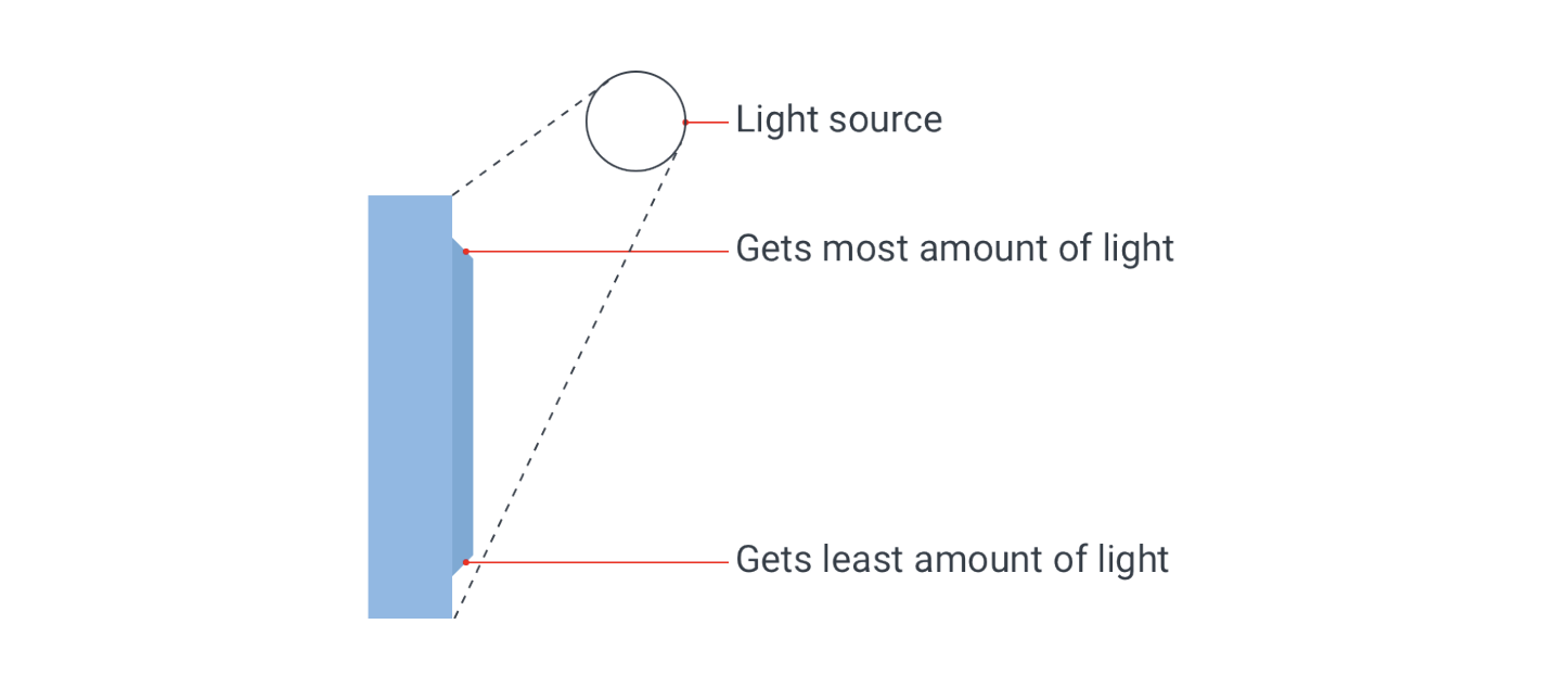 雖然這只是一張平面圖片,但面板看起來卻很立體。為什麼會這樣呢?看看面板的上邊緣比較亮,下邊緣比較暗。這是因為上邊能接收到更多來自上方的光線,而下邊則接收不到那麼多光。正是這種明暗的變化讓我們的大腦認為面板是凸起的。這就是視覺效果的奧秘所在。