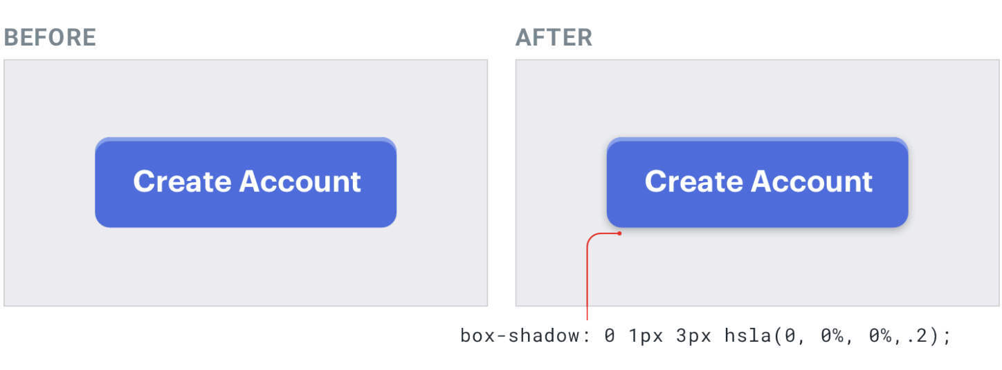 比如你想讓一個按鈕看起來從頁面上凸起來,上下兩邊都是平的。因為按鈕的上下邊都是平的,我們其實看不到兩邊。不過因為我們一般是稍微低頭看螢幕的,所以讓按鈕露出一點上邊緣、隱藏下邊緣會看起來最自然。