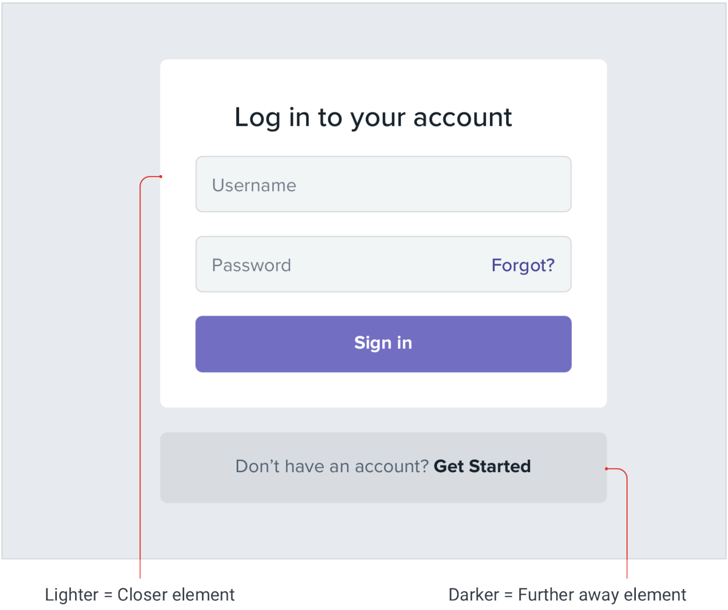 淺色會讓人覺得更近,深色會讓人覺得更遠。想要讓一個元素看起來突出,就把它做得比背景色淺一些;想要讓它看起來凹進去,就把它做得比背景色深一些。這個技巧不光適用於扁平化設計,在其他設計中也同樣好用。