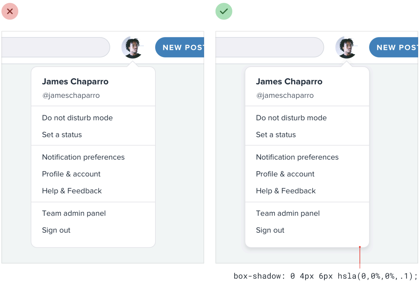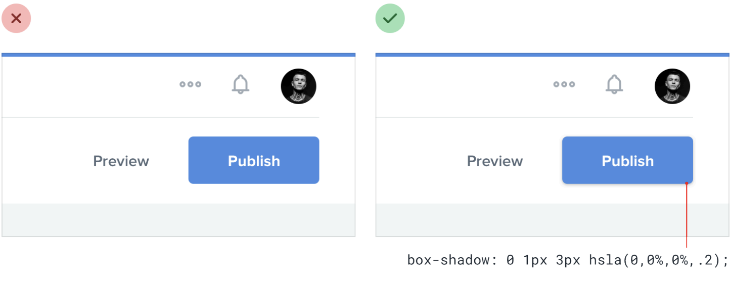 使用陰影時,重點不是陰影本身,而是思考:這個元素需要多突出?然後選擇合適大小的陰影來實現這個效果。