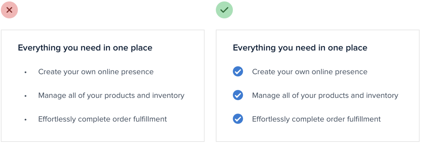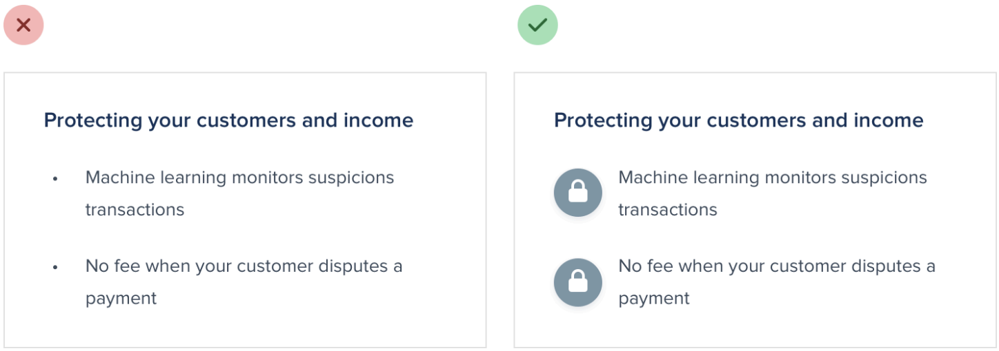 一般情況下,用對勾或箭頭就很不錯。不過,你也可以根據內容選擇更合適的圖示,比如在介紹安全功能時使用小鎖圖示: