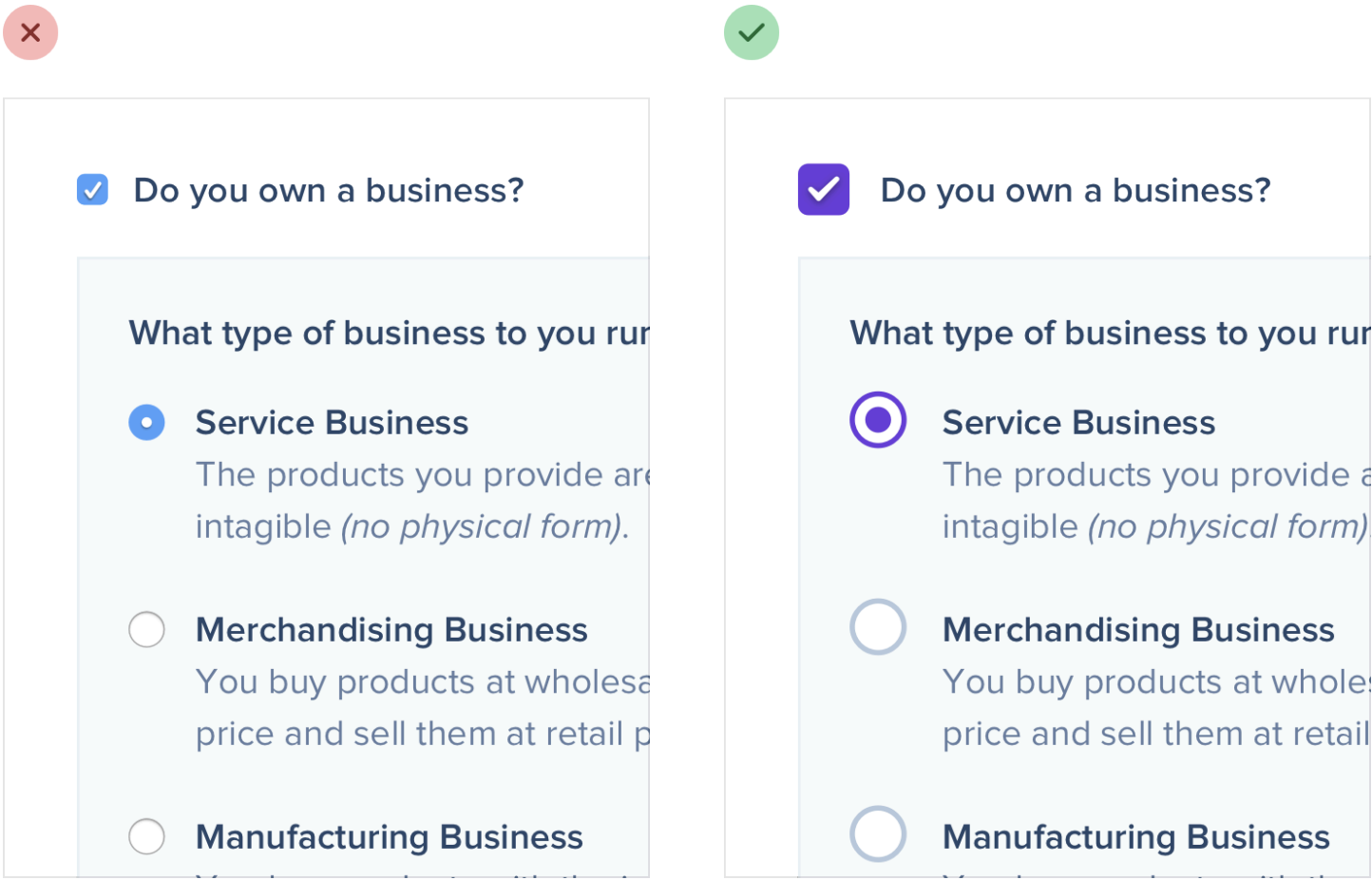 在設計表單時,把預設的核取方塊和單選按鈕換成自定義樣式,就能讓頁面更好看:只要把選中狀態的顏色改成你的品牌顏色,就能讓普通的表單看起來更專業、更精緻。