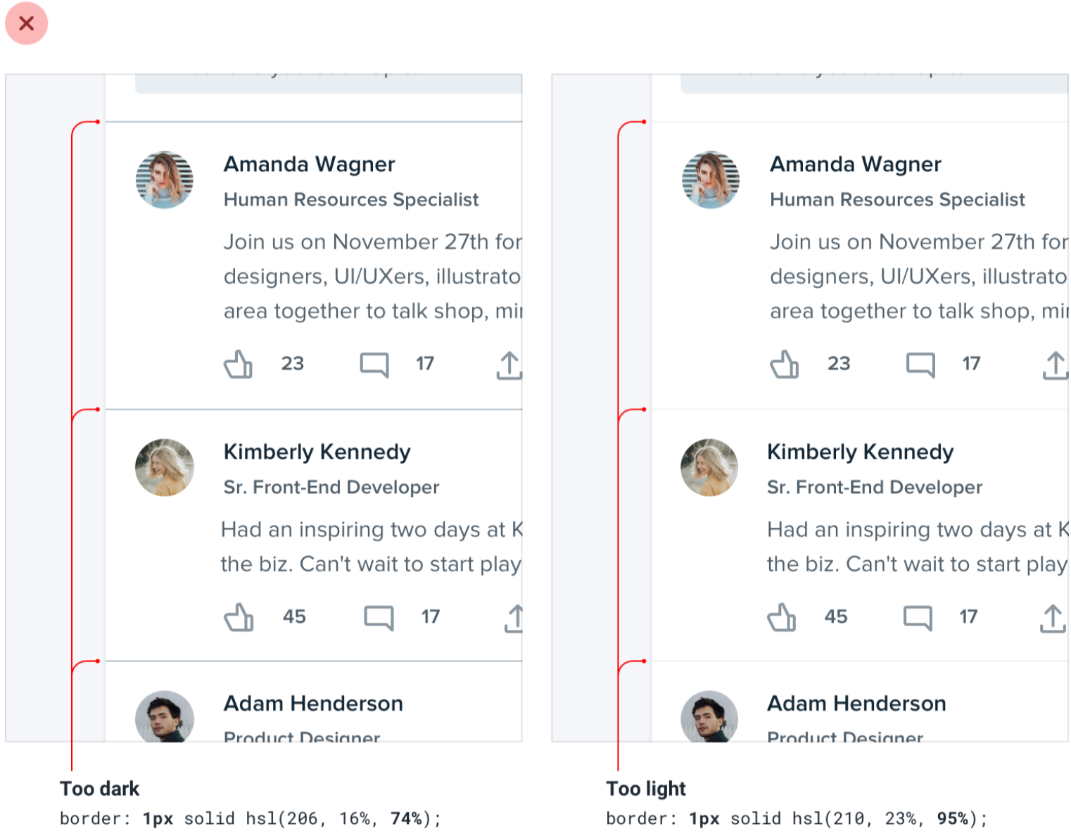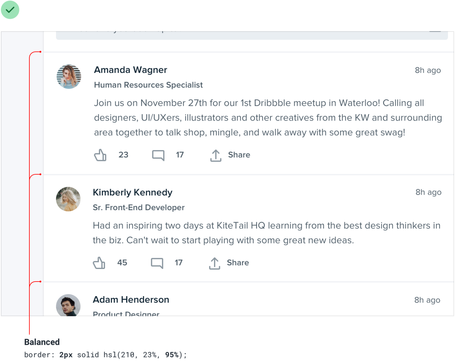 比如說,當我們用淺色畫邊框時,1畫素的細線可能太不明顯,但是用深色又顯得太刺眼。這時候,我們可以把邊框加粗一點,這樣既能讓邊框更容易看到,又能保持柔和的視覺效果。
