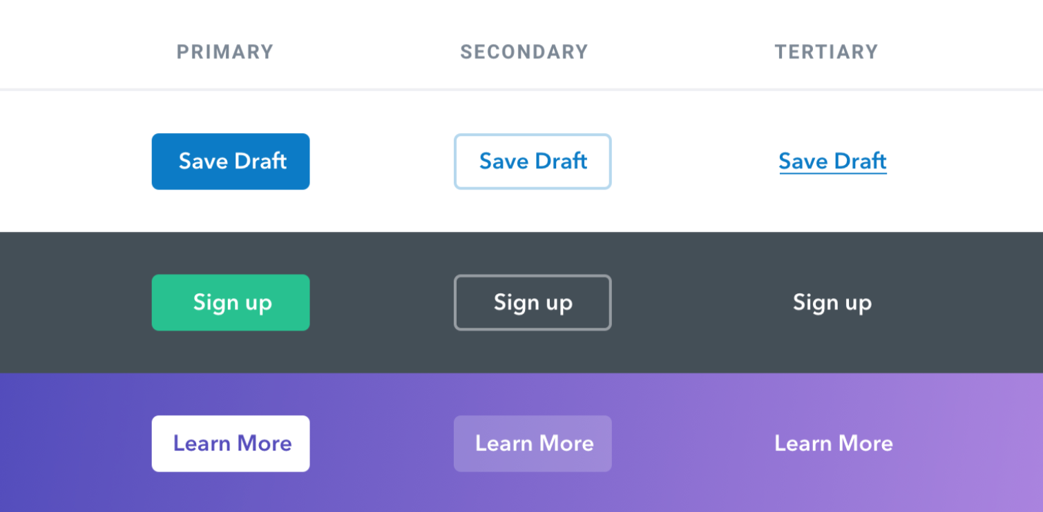 雖然功能很重要,但按鈕的視覺層級同樣重要。每個頁面上的按鈕都有不同的重要程度: