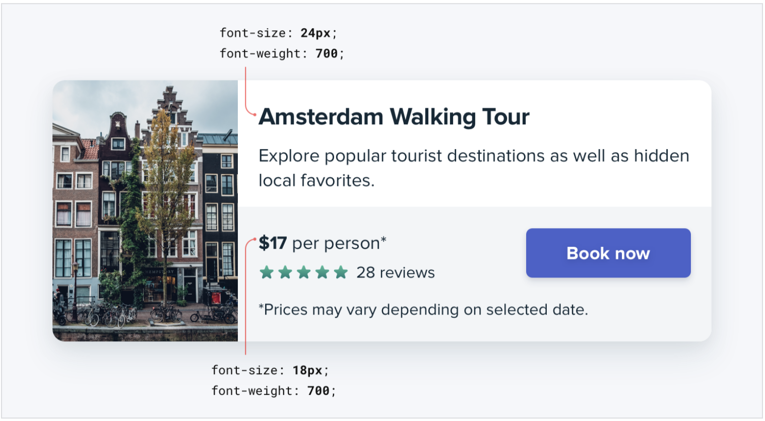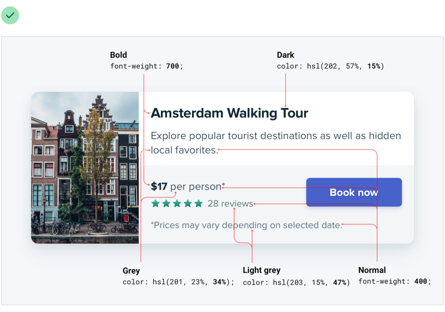 注意:設計介面時不要用太細的字型(低於400),因為這種字型雖然適合做大標題,但字小時會很難看清。如果想讓某些文字顯得不那麼重要,建議調整顏色或字號,而不是用更細的字型。