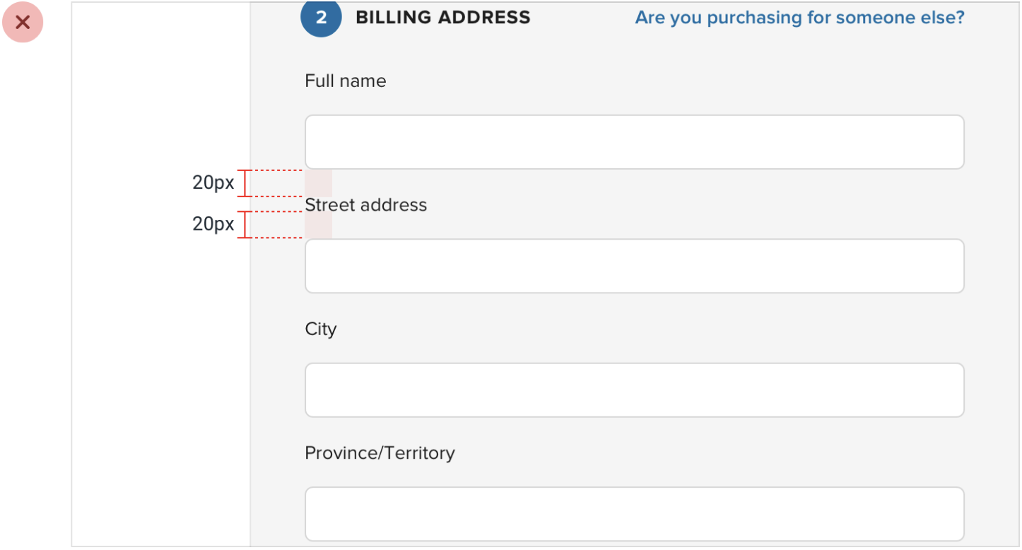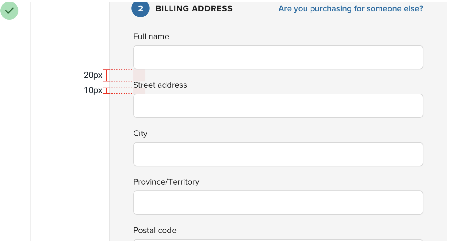 比如說,在設計表單時,如果標籤和輸入框之間的間距,跟兩組表單之間的間距一樣大,使用者就不容易看出哪個標籤對應哪個輸入框。這樣會讓使用者看得很累,搞不好還會填錯資訊。