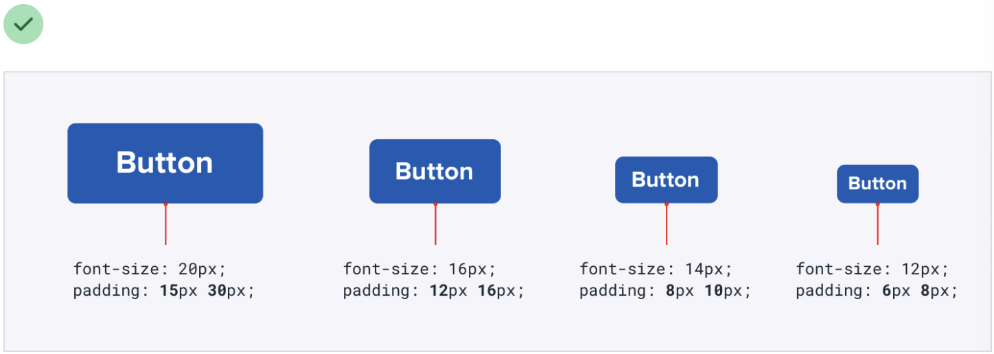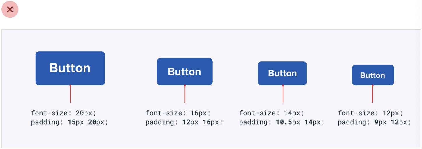 雖然這樣做技術上可行,但未必是最好的選擇。如果我們讓大按鈕的空隙相對更大一些,小按鈕的空隙相對更小一些,效果會更好:這樣大按鈕看起來更突出,小按鈕則更緊湊,而不是簡單的整體放大縮小。