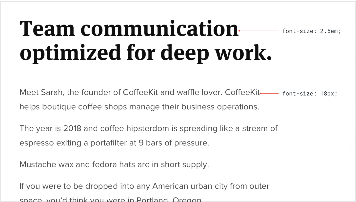 讓我們看一個例子:假設你在電腦螢幕上設計一篇文章。正文字型是18畫素,標題是45畫素。你可能會想把標題設定為正文的2.5倍大小。這樣做看起來很合理,對吧?