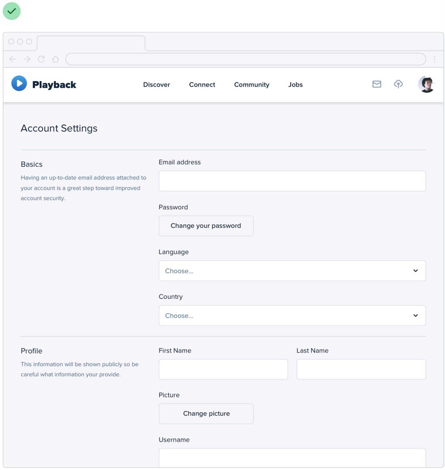 想要讓窄內容在寬屏上看起來更好?試試把內容分成幾欄,而不是簡單地加寬。比如一個窄表單:如果想在寬屏上顯示得更好,可以把說明文字放在旁邊一欄。這樣既美觀又實用,表單本身的寬度還是最合適的大小。