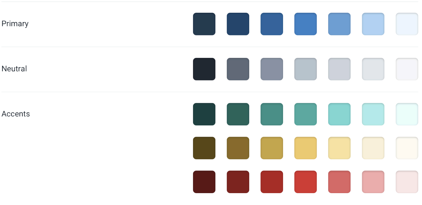 在實際設計中使用這些顏色時,你可能會想改變某些顏色的深淺或鮮豔程度。這時候要相信自己的眼睛,而不是固定的數字。但要注意:儘量不要隨便加入新的顏色。如果總是隨意新增新顏色,那麼制定的顏色系統就沒有意義了。