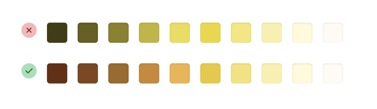 要解決這個問題很簡單:當你把顏色調得更亮或更暗時,同時也要把它調得更鮮豔一些。這樣可以保持顏色的活力。