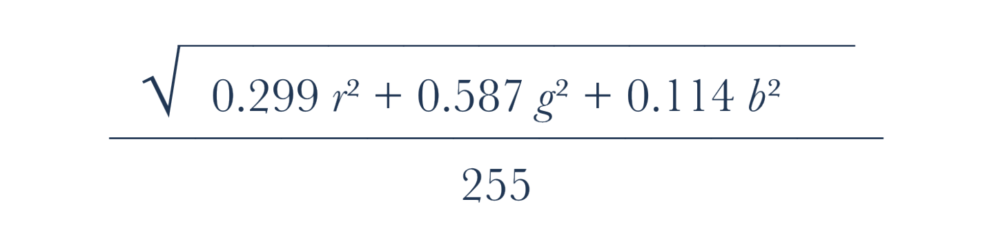 這是因為每種顏色天生就有自己的明暗感。這跟我們人眼看顏色的方式有關。實際上,我們可以用一個數學公式來計算顏色給人的明暗感: