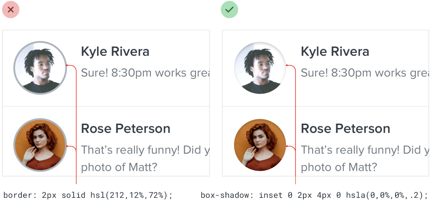 新增細微效果:不用給圖片加邊框,用淡淡的內陰影效果就夠了。這樣看起來更自然,很多人甚至注意不到陰影的存在。如果不喜歡內陰影效果,也可以用半透明的細邊框來代替。