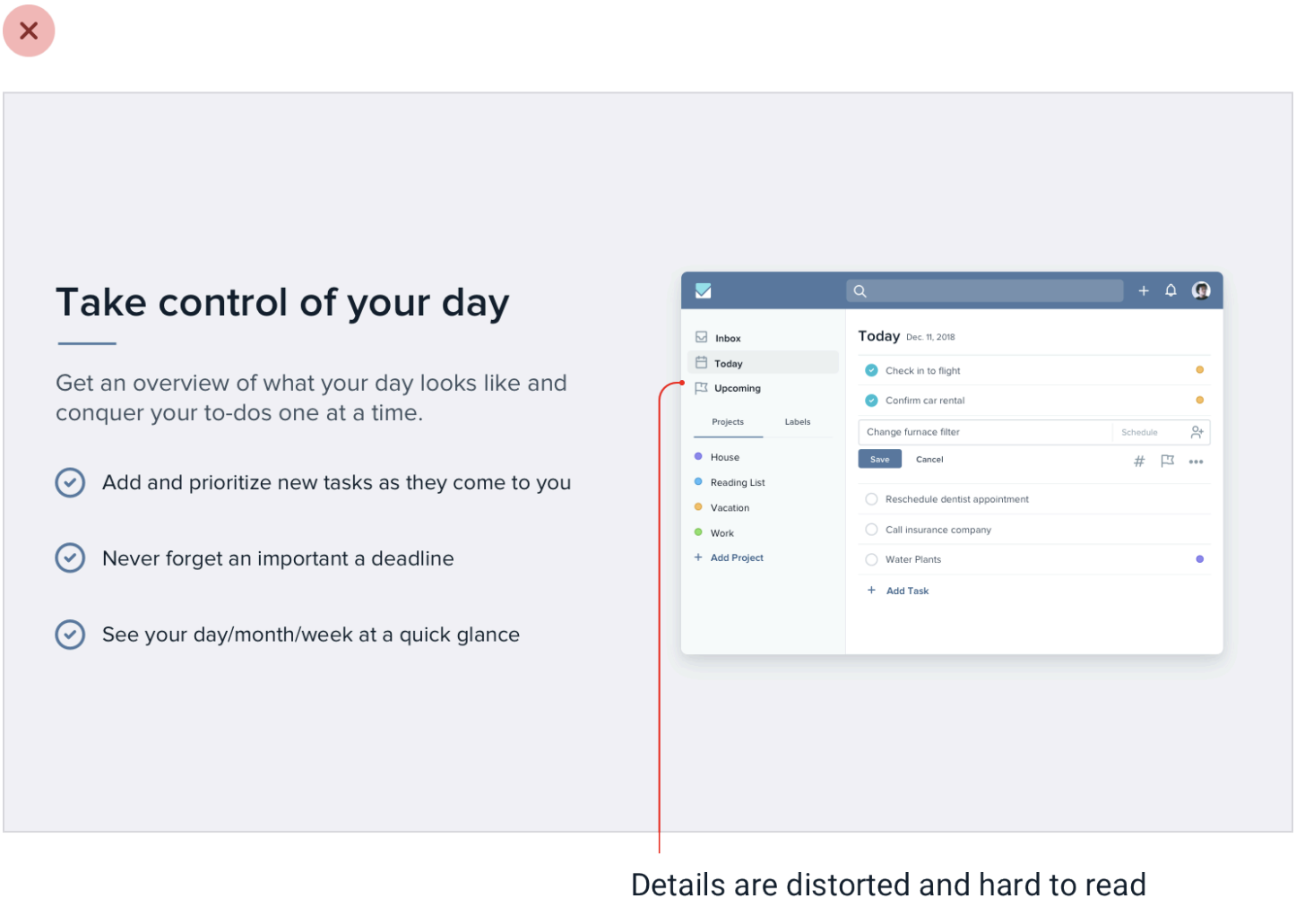 當你把一張大截圖縮小到頁面上70%的尺寸時,會出現一個問題:圖裡的內容會變得太小,很難看清。比如,原本清晰的文字會變得特別小,讓使用者不得不把臉湊近螢幕才能看清。