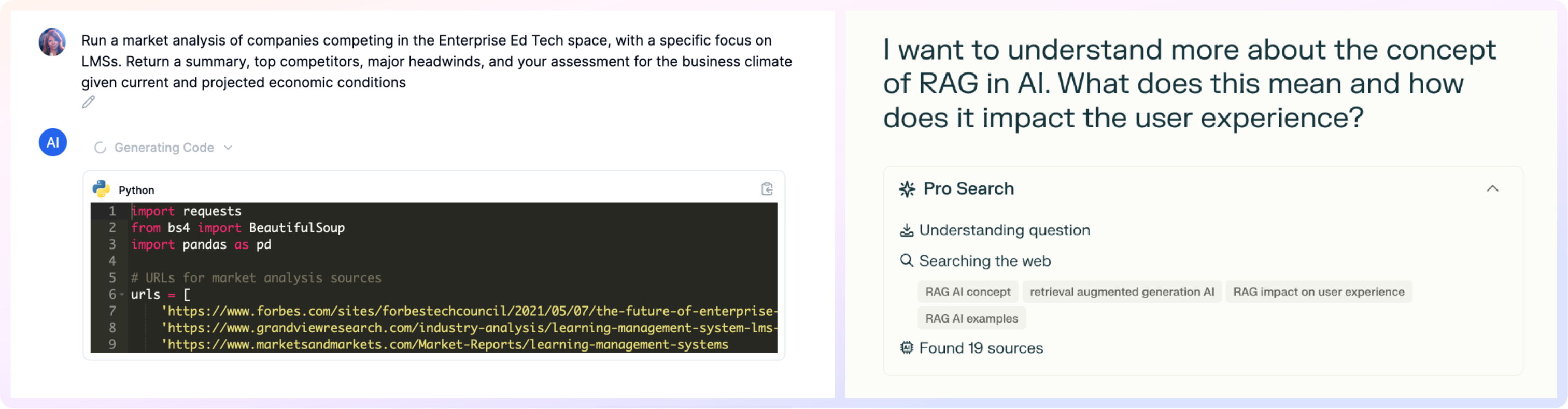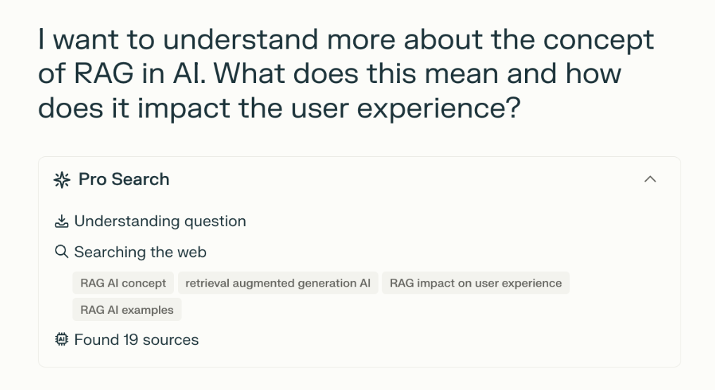 - 透明處理流程:AI 在響應複雜請求時,清晰展示其將採取的所有步驟,讓使用者能夠理解生成邏輯。示例:RAG 應用(如 Julius.ai 和 Perplexity)展示從資料檢索到最終生成的每一步操作。