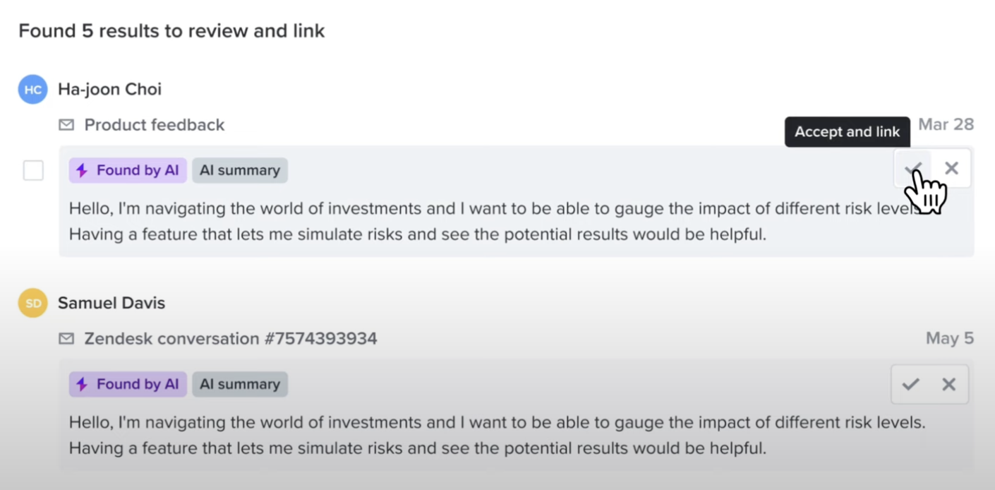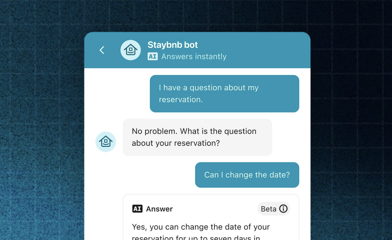 示例:Intercom 的 Fin 在每條 AI 生成的訊息上新增“AI”標籤,且當切換至人工客服時,標籤持續存在,便於使用者追溯對話過程。