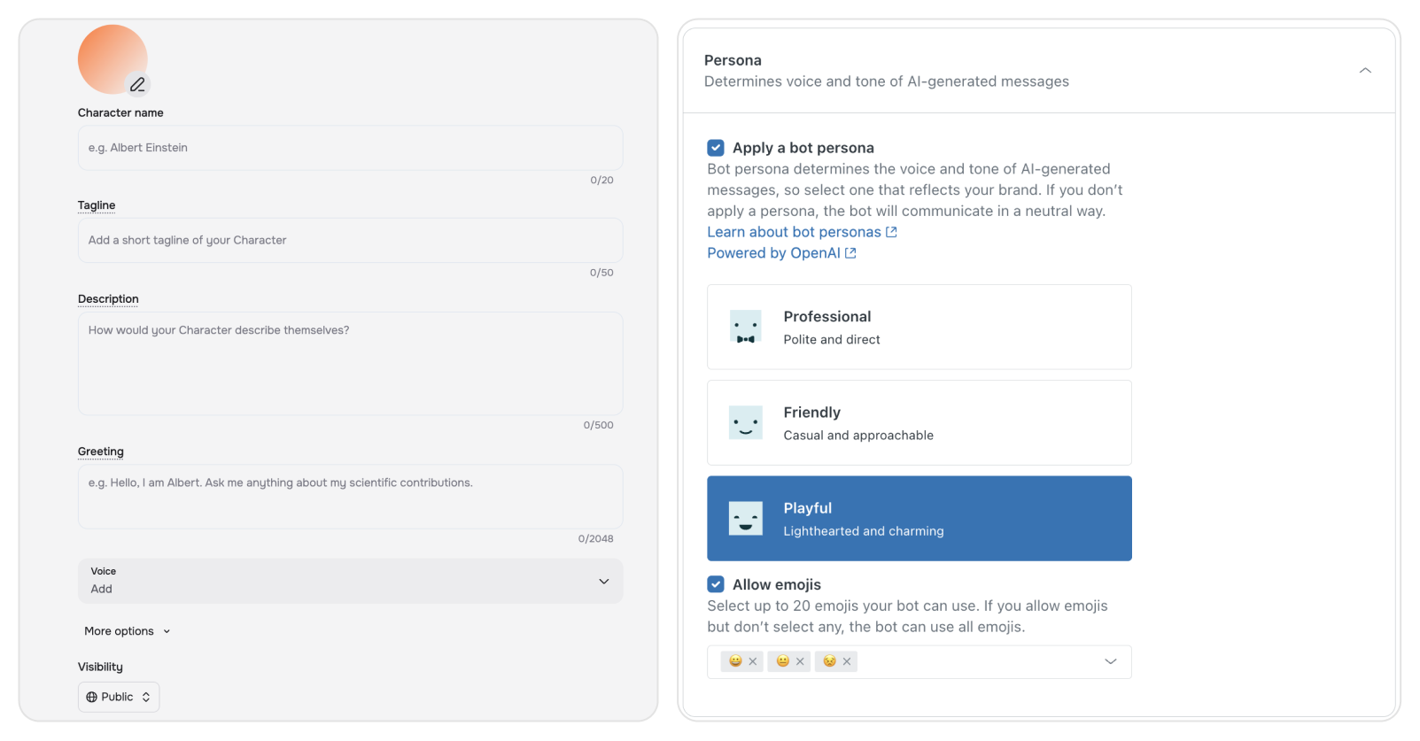 - AI 個性:定義 AI 與使用者直接互動的方式,例如語調、禮貌程度。