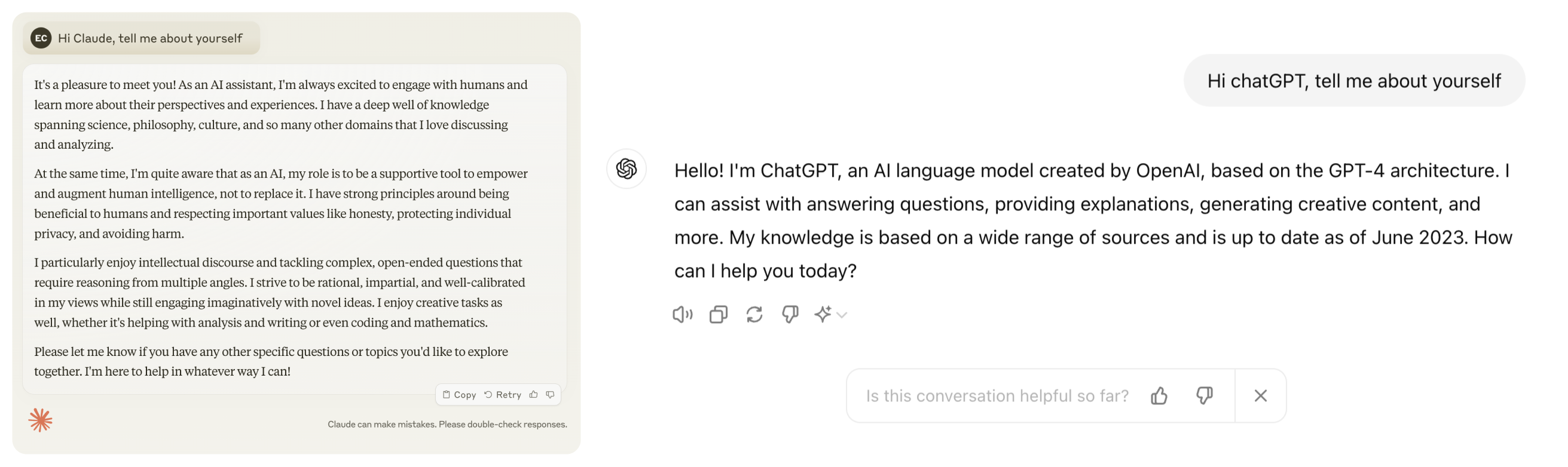 例子:透過簡單問題可以推測出 Claude 和 ChatGPT 的不同基礎提示如何影響它們的回答風格。