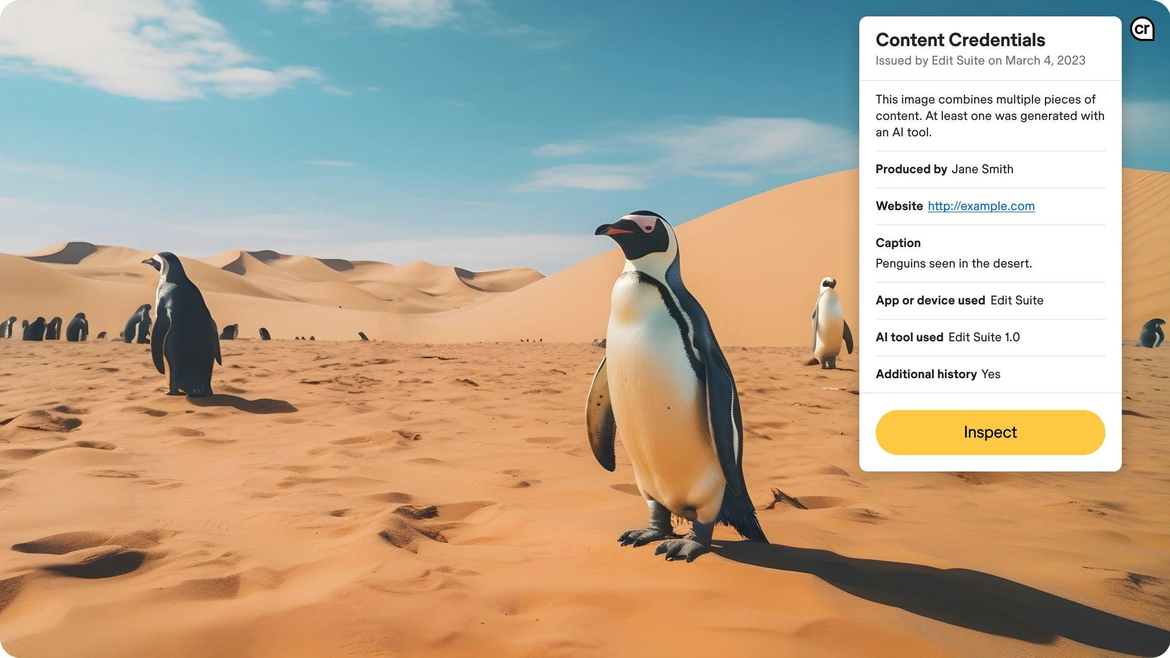 - Content Credentials Verifier:支援內容上傳後識別後設資料中嵌入的水印。