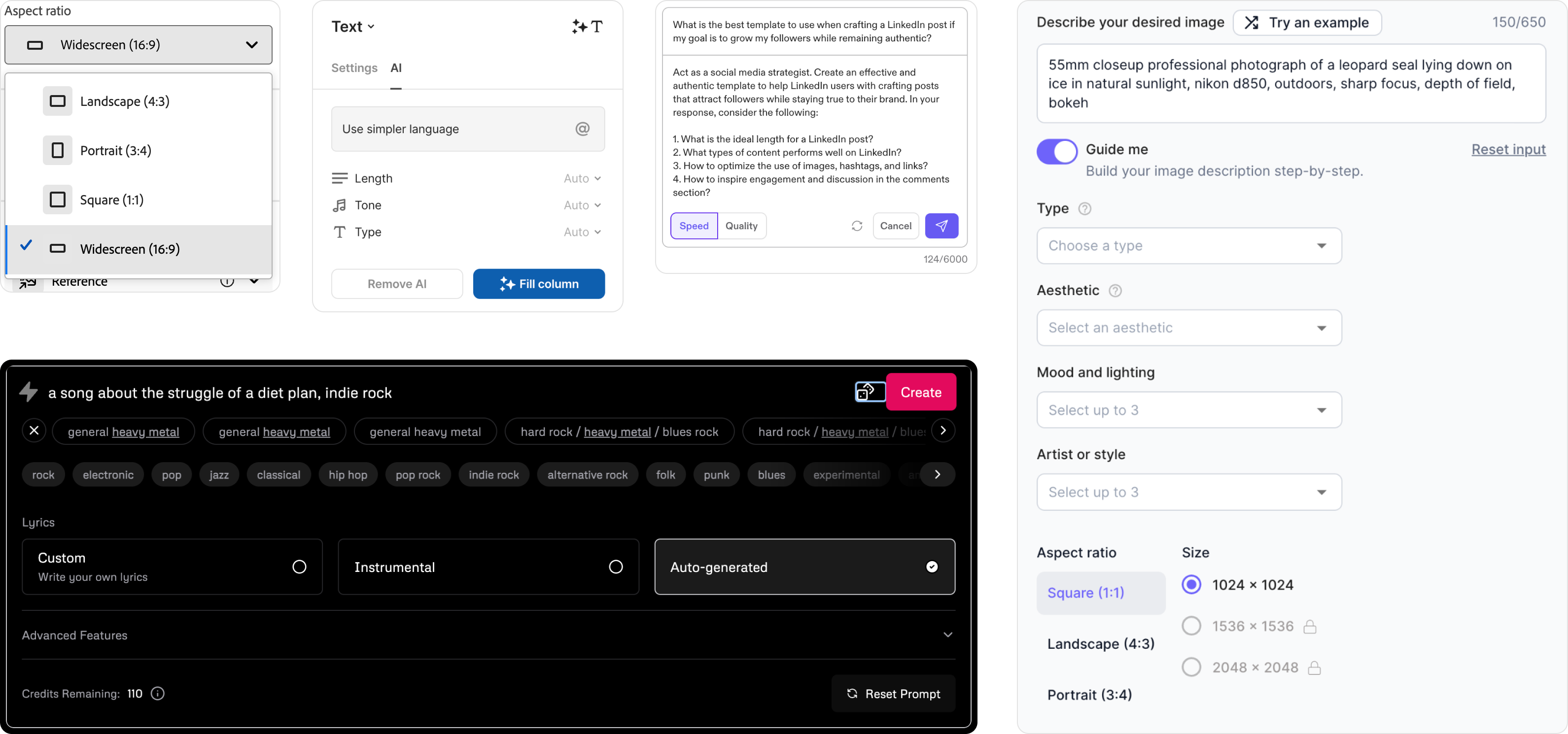 - Udio 的多引數介面讓使用者一次性設定多個屬性,增加操作效率和生成的趣味性。