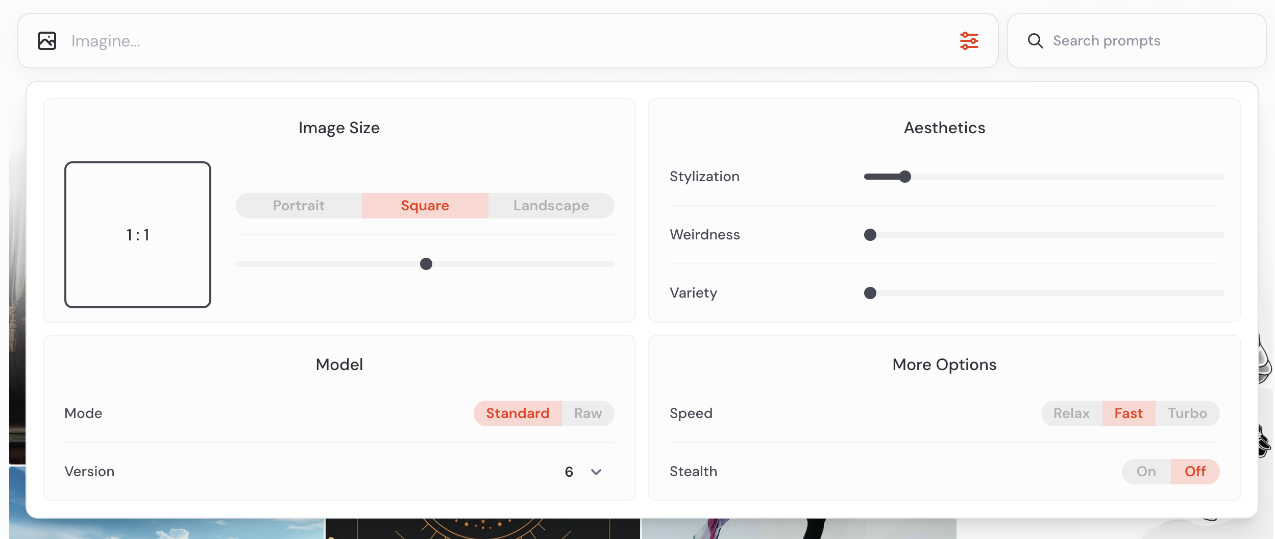 - MidJourney Alpha Web 介面透過預設引數簡化使用者操作,但對高階設定的發現性有所犧牲。