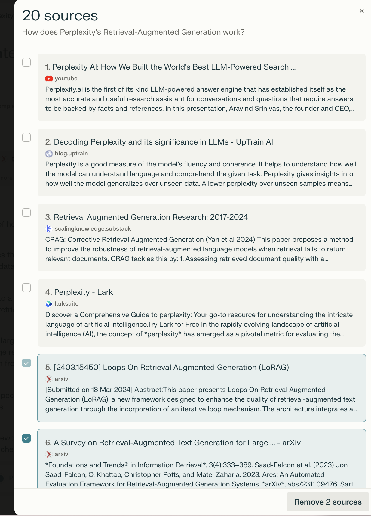 - 允許使用者新增或移除引用源,根據任務需求調整參考資料的相關性。