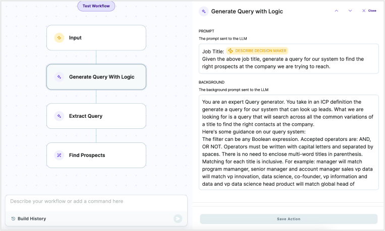 - 工作流可手動構建,或者透過開放式提示生成初稿,然後由使用者修改完善。
