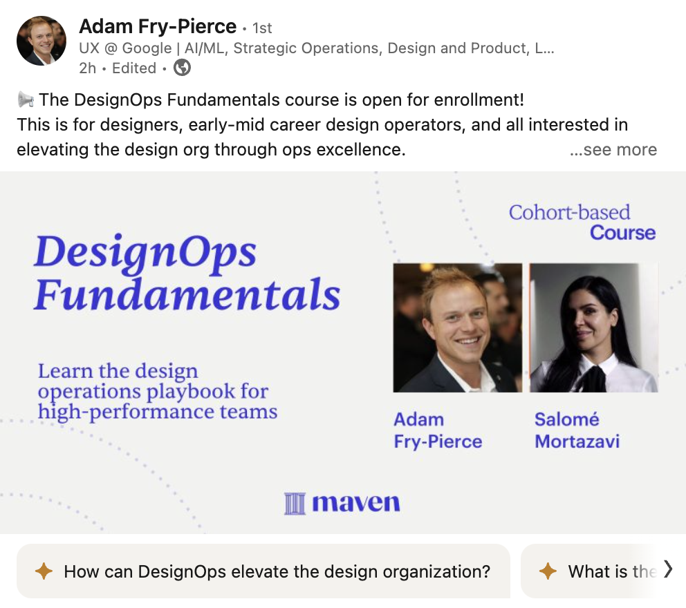 此外,Meta、LinkedIn等基於內容流的產品也越來越多地在每個帖子下方新增提示建議。這些建議的質量和相關性參差不齊,有時可能是為了提升使用者的參與度,甚至增加用於訓練AI的資料流量。