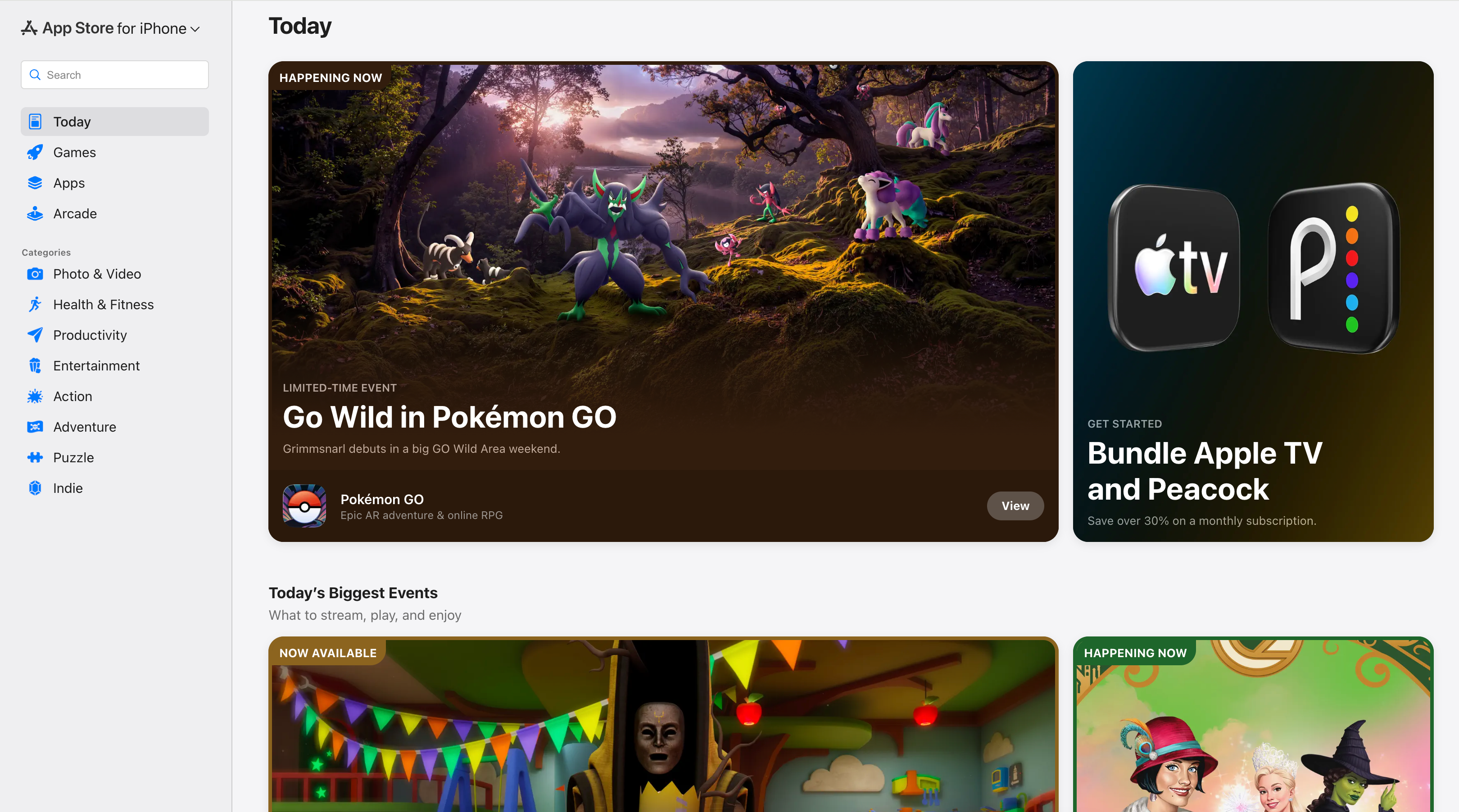 蘋果將 App Store 內最具內容吸引力的 “Today” 版塊完整移植到 Web,包括編輯精選故事、活動專題、主打遊戲、推薦 App 等內容,使 App Store 成為可以線上傳播的內容中心。
