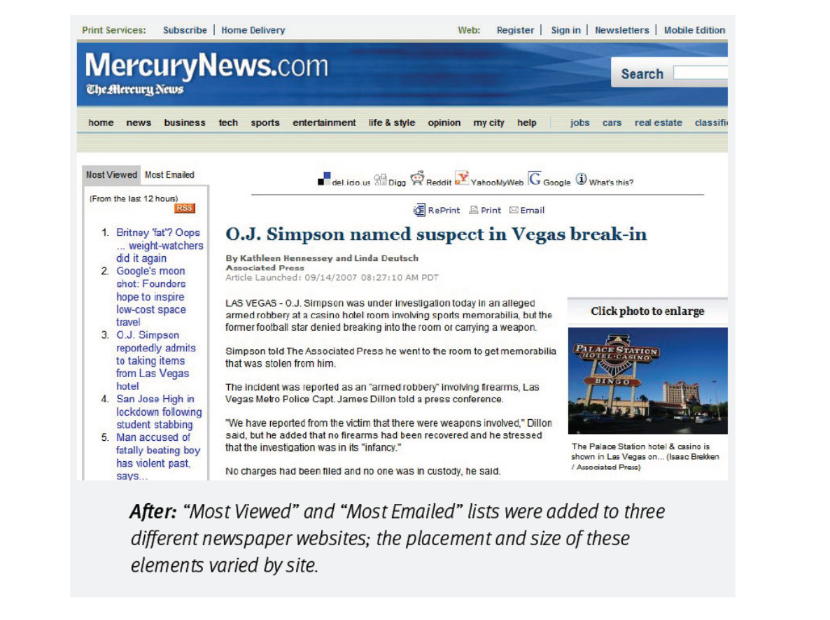 這個模組被植入到 Mercury News、Daily News 和 Twin Cities 三個站點中,並測試其影響力。