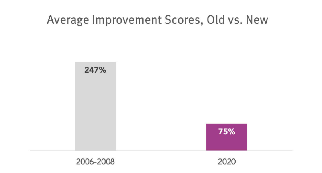 在過去 14 年中,我們可以看到 UX 從 2006 年到現在變化了多少。從資料上看得出來,現在設計的提升沒以前那麼大了。